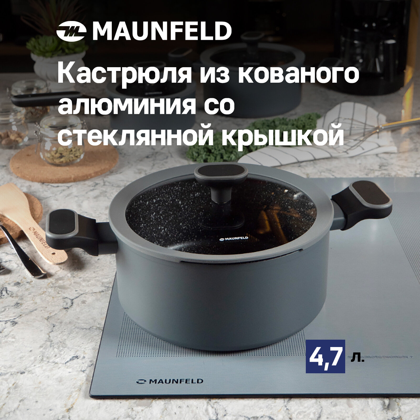 Кастрюля MAUNFELD FRIDA MCS47FA02DG из кованого алюминия со стеклянной крышкой, 24 см, 4,7 л. информация: