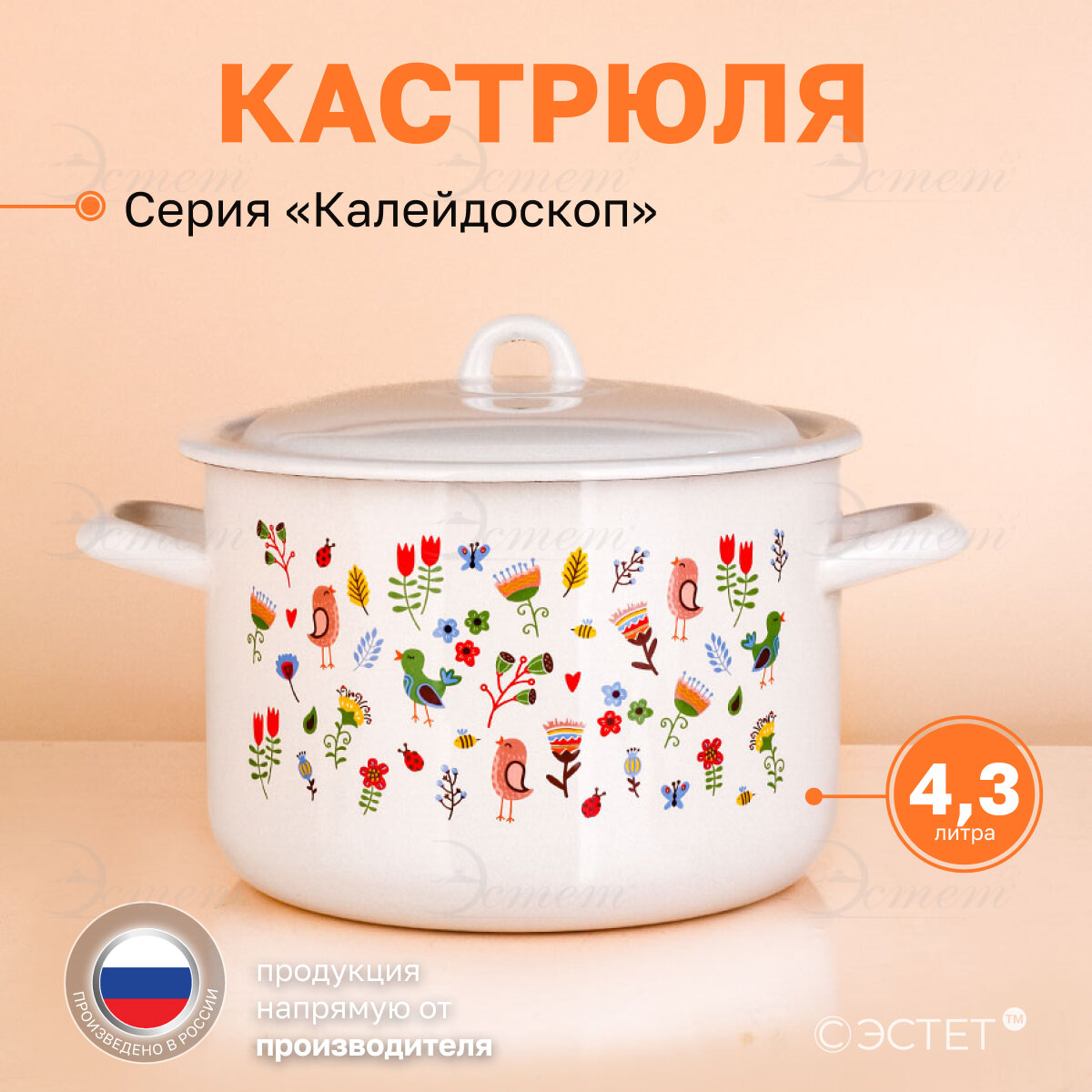 10 цен на Кастрюля эмалированная 4.3 л для всех видов плит "Калейдоскоп"