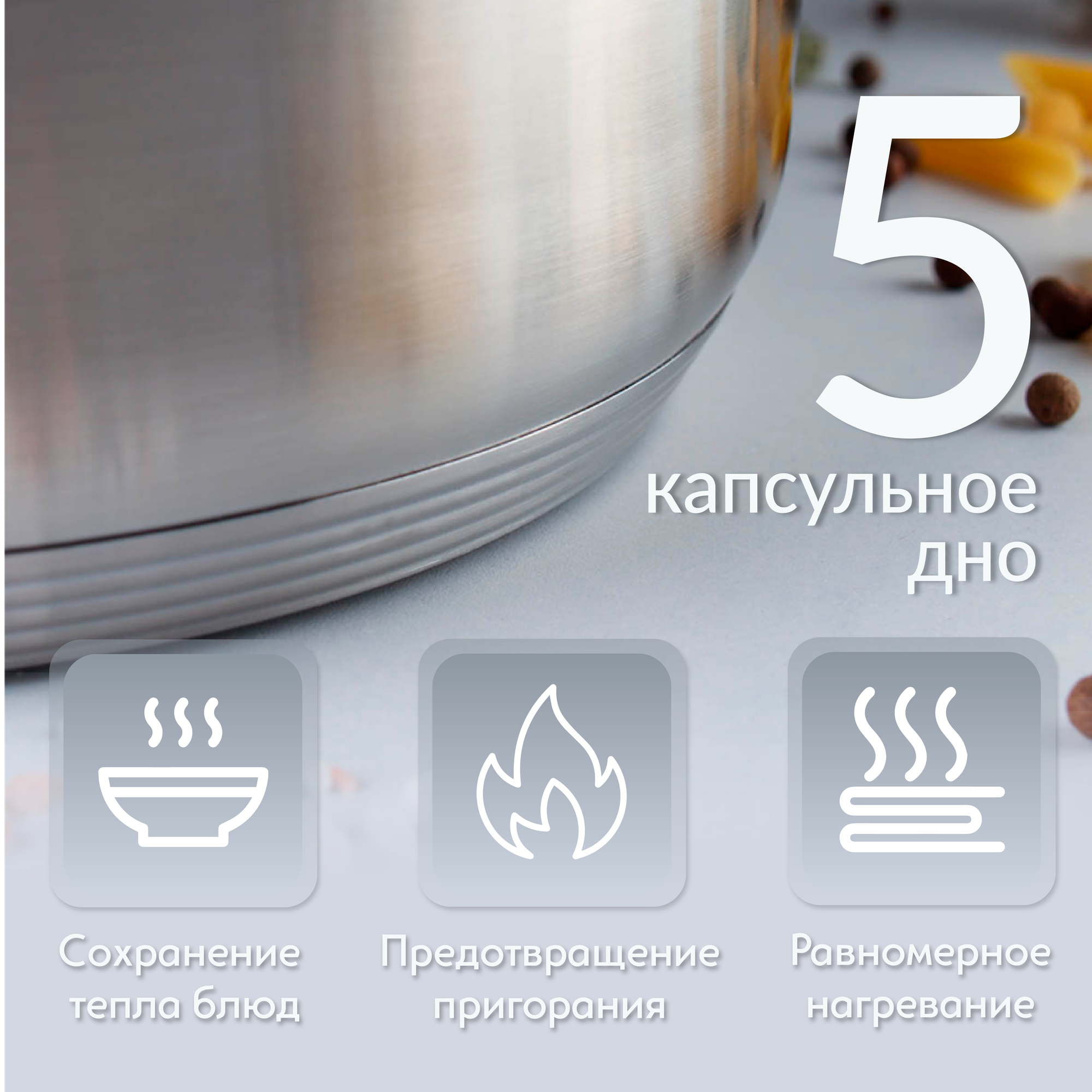 Кастрюля 4,3 л нержавеющая сталь Квинта для всех типов плит 2 260 ₽