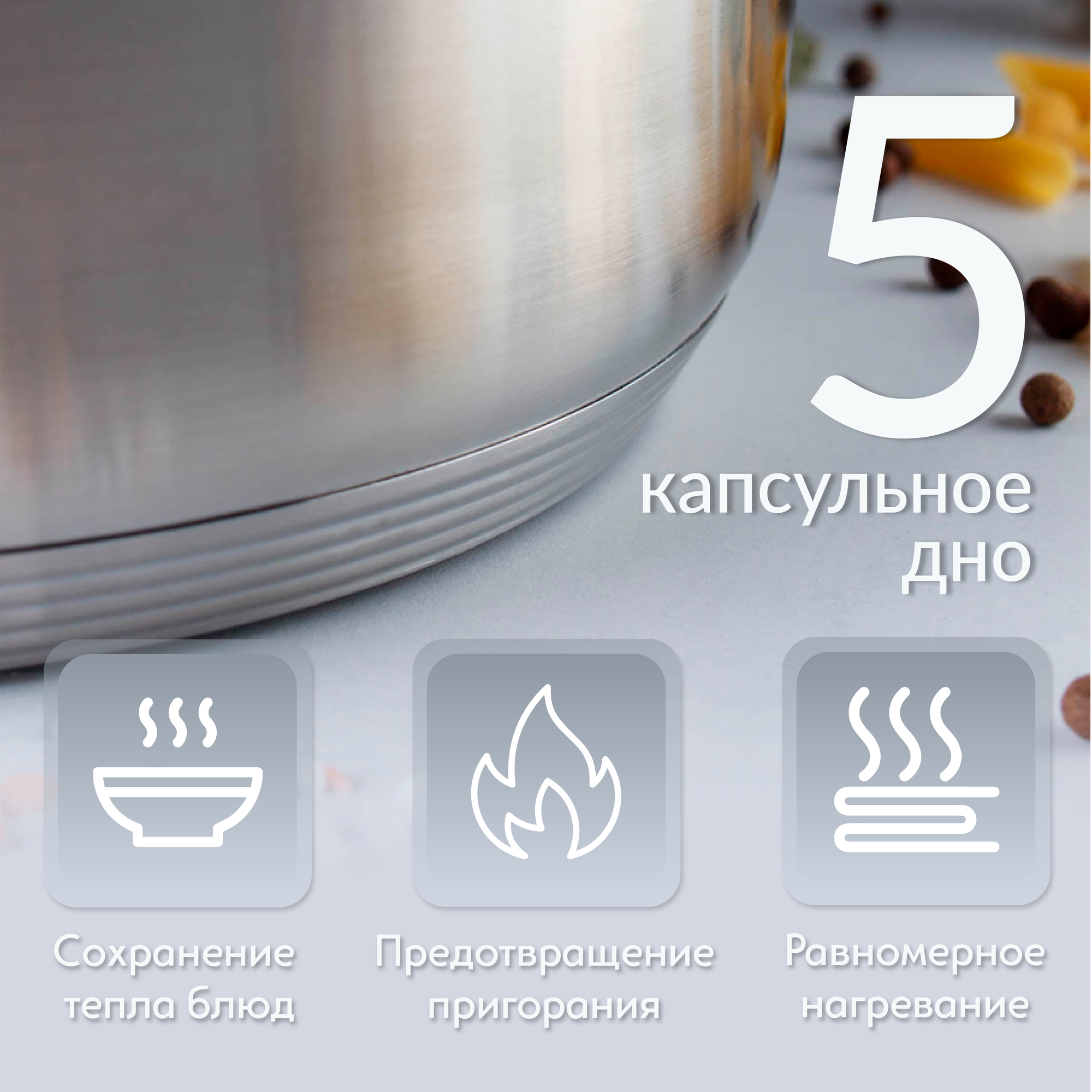 Кастрюля нержавеющая сталь Ария 4,4 л для всех типов плит / индукция информация: