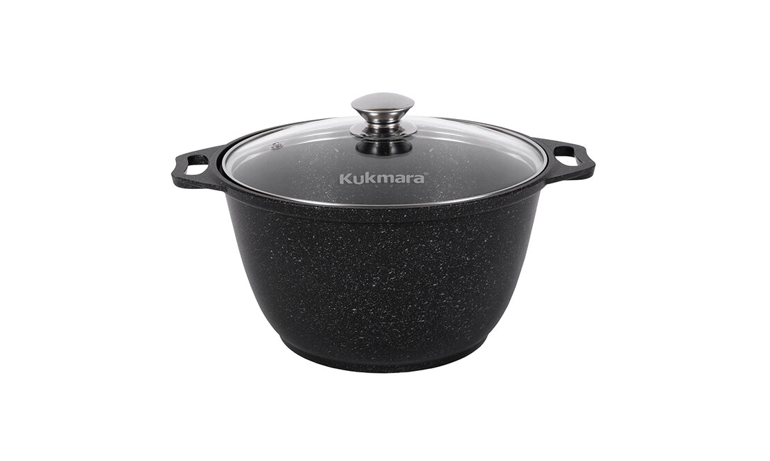 Кастрюля "Kukmara" 4л. со стеклянной крышкой, с антипригарным покрытием, темный мрамор информация: