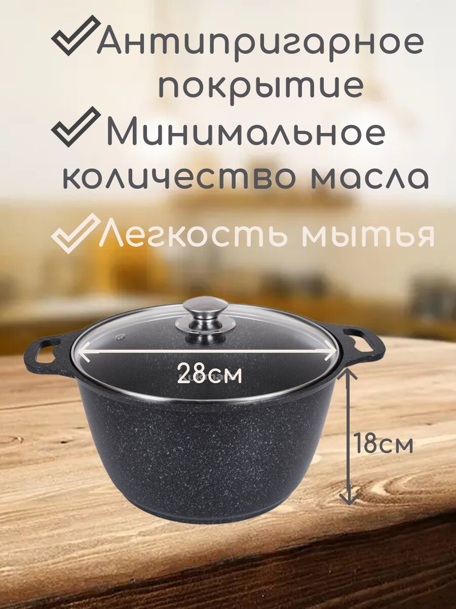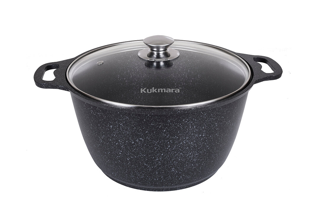 10 цен на Кастрюля "Kukmara" 8л. со стеклянной крышкой, с антипригарным покрытием, темный мрамор