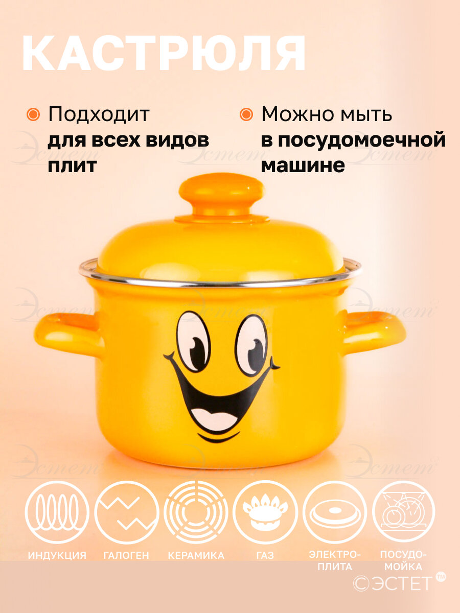 Кастрюля эмалированная 1.5 л "Улыбка" для всех типов плит информация: