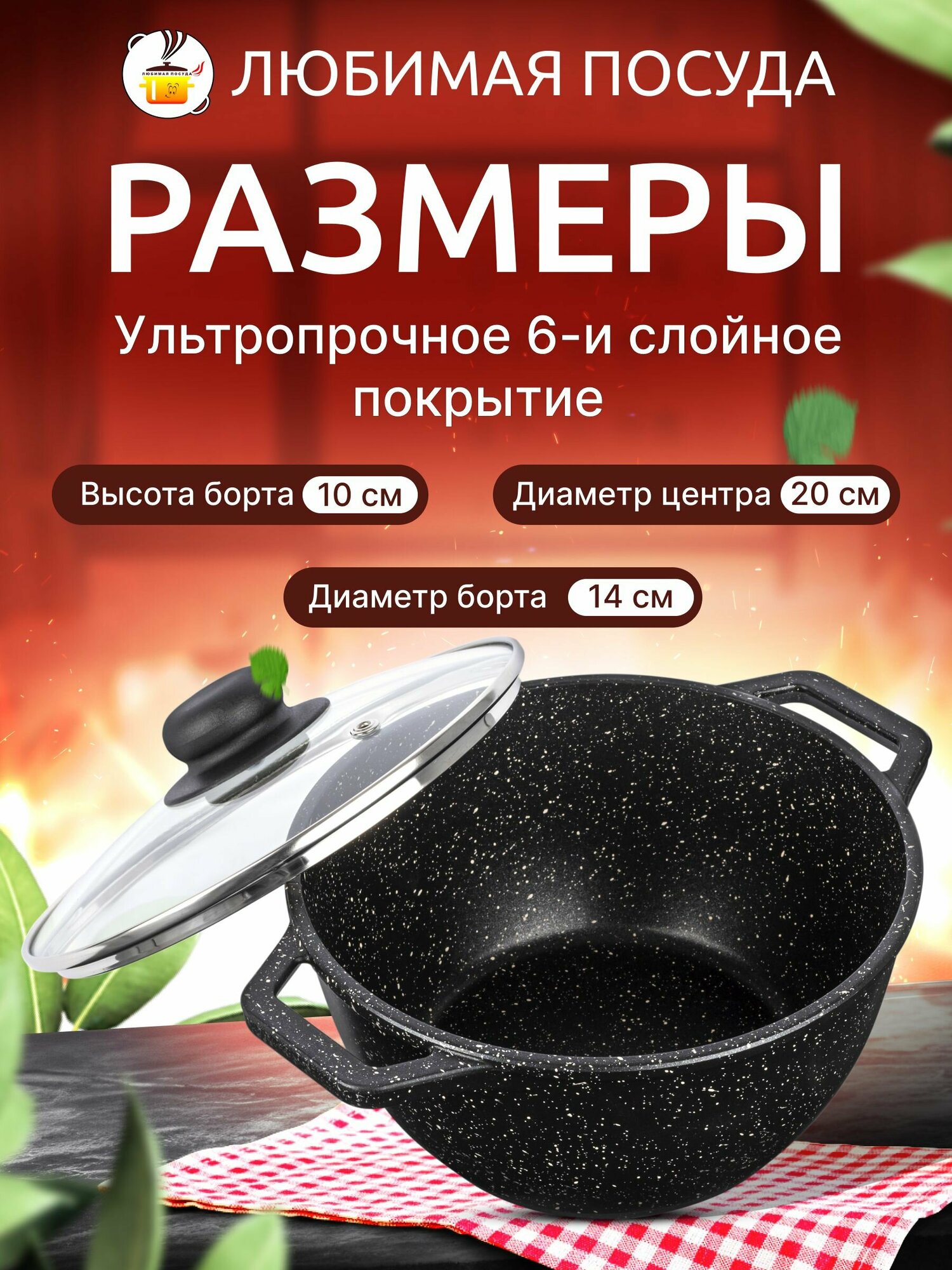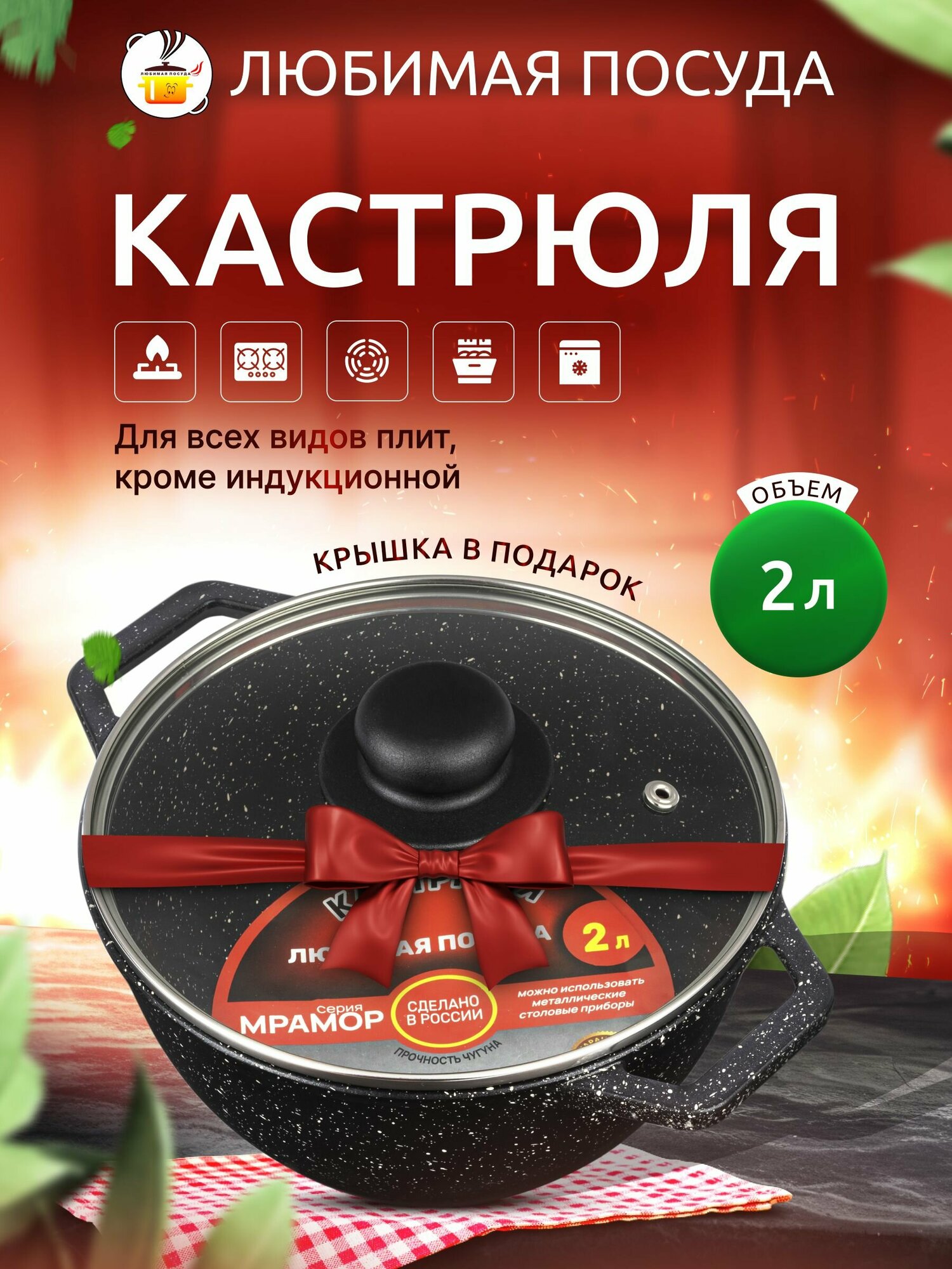 Кастрюля мраморная, литая , толстостенная 2 л со стеклянной крышкой информация: