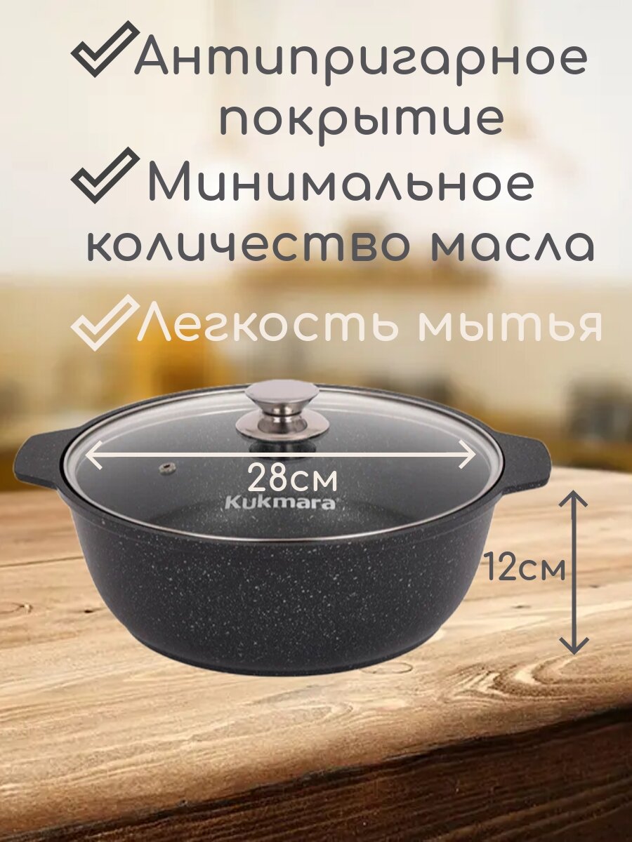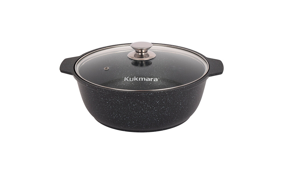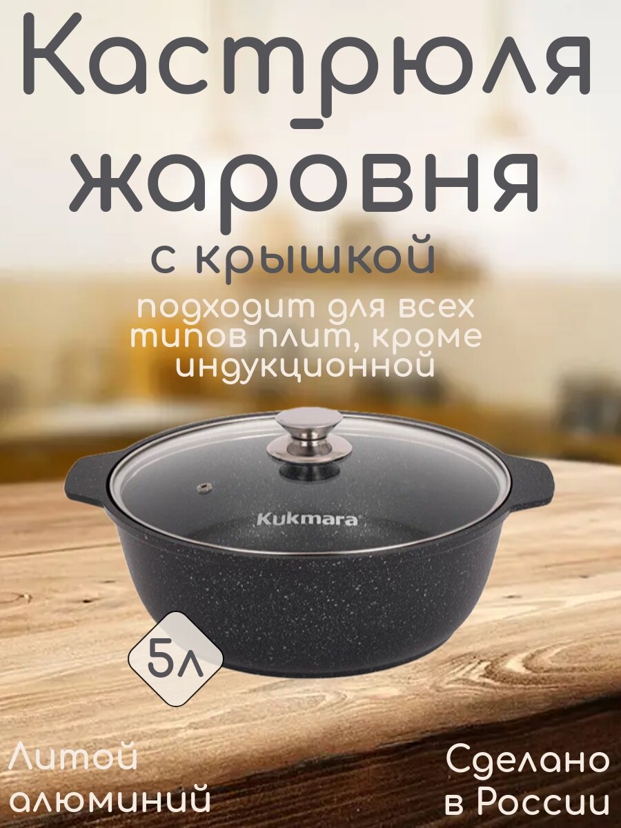 Кастрюля-жаровня "Kukmara" 5л. со стеклянной крышкой, с антипригарным покрытием, темный мрамор информация: