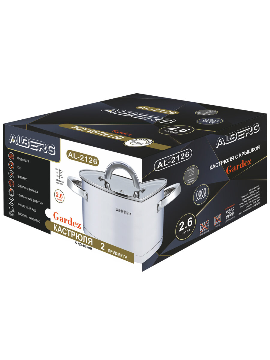 10 цен на Кастрюля с крышкой ALBERG AL-2126, 2.6 л (Ø18х10.5см), нержавеющая сталь
