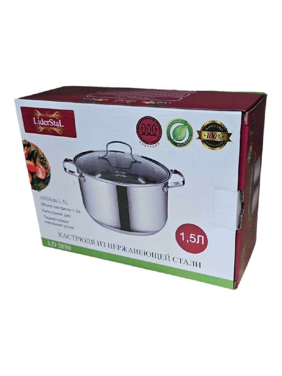 Кастрюля "Lider StaL" LD-2030, нержавеющая сталь, серебристая, капсульное дно информация: