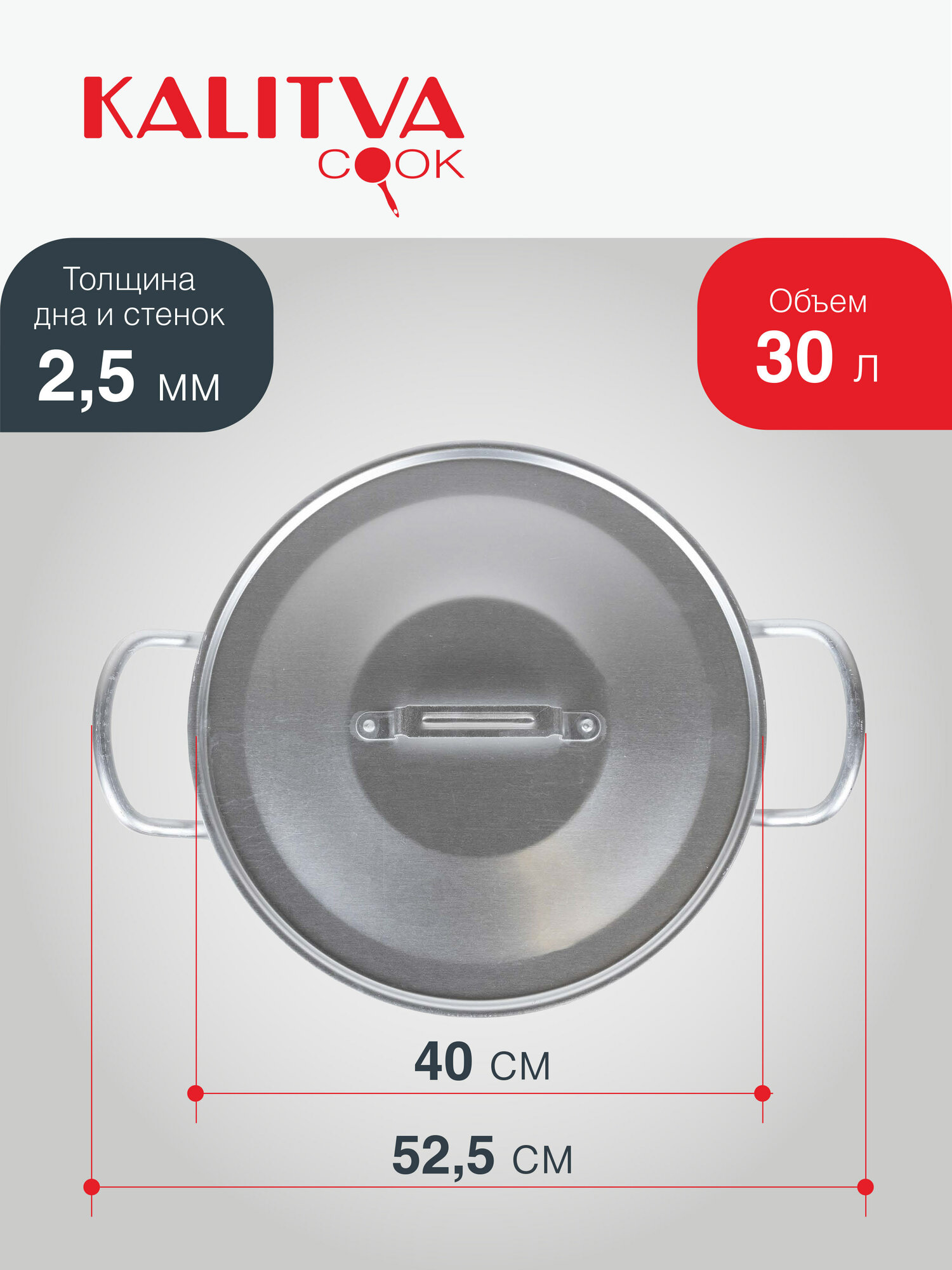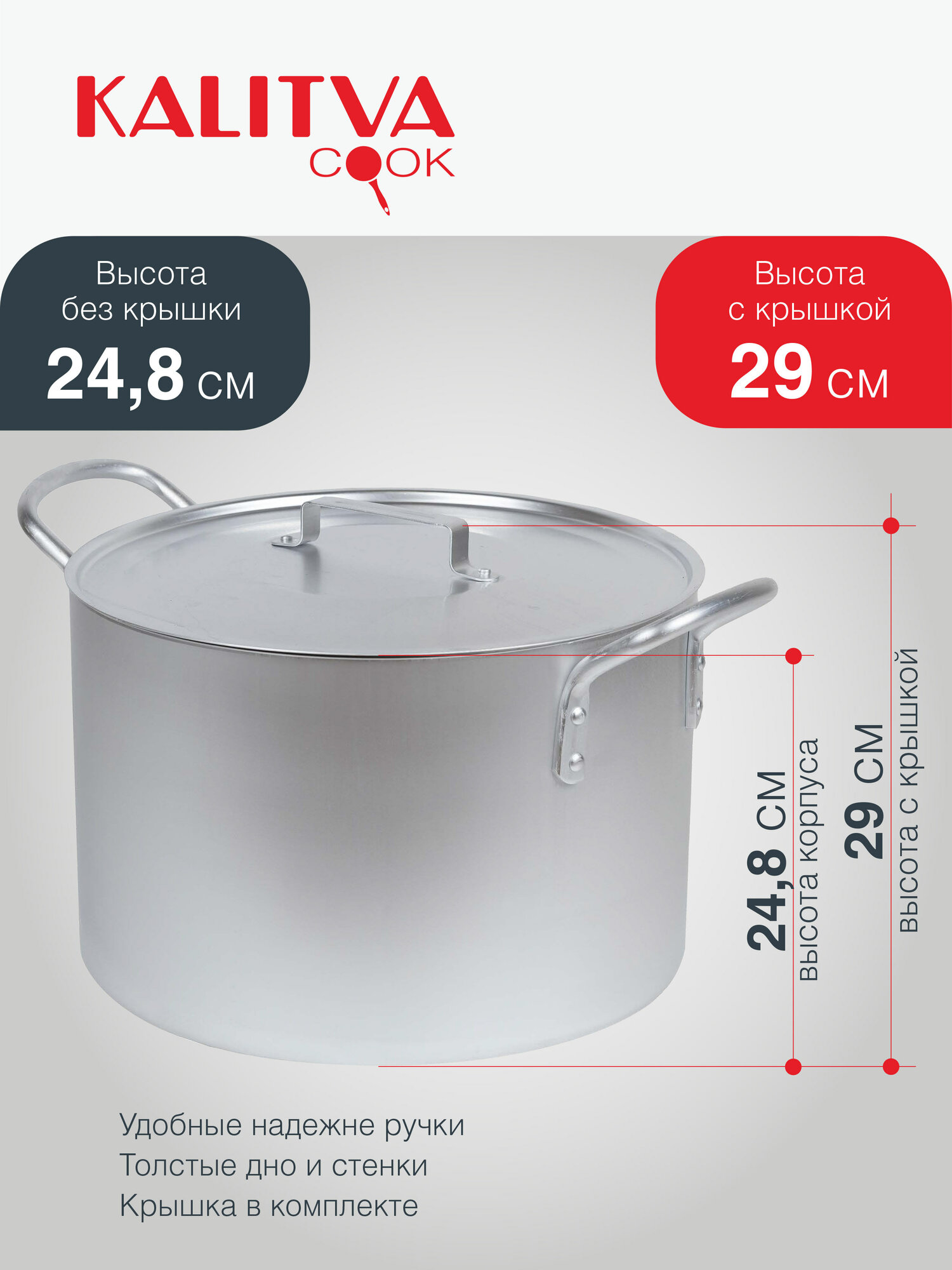 10 цен на Котел Калитва 17302 из пищевого алюминия, объемом 30 литров, с металлической крышкой и ручками.
