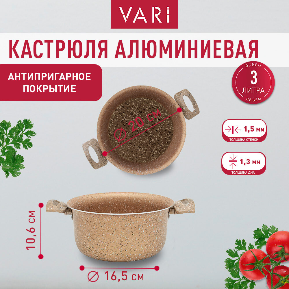 Кастрюля алюминиевая с антипригарным покрытием, 2.5 литра