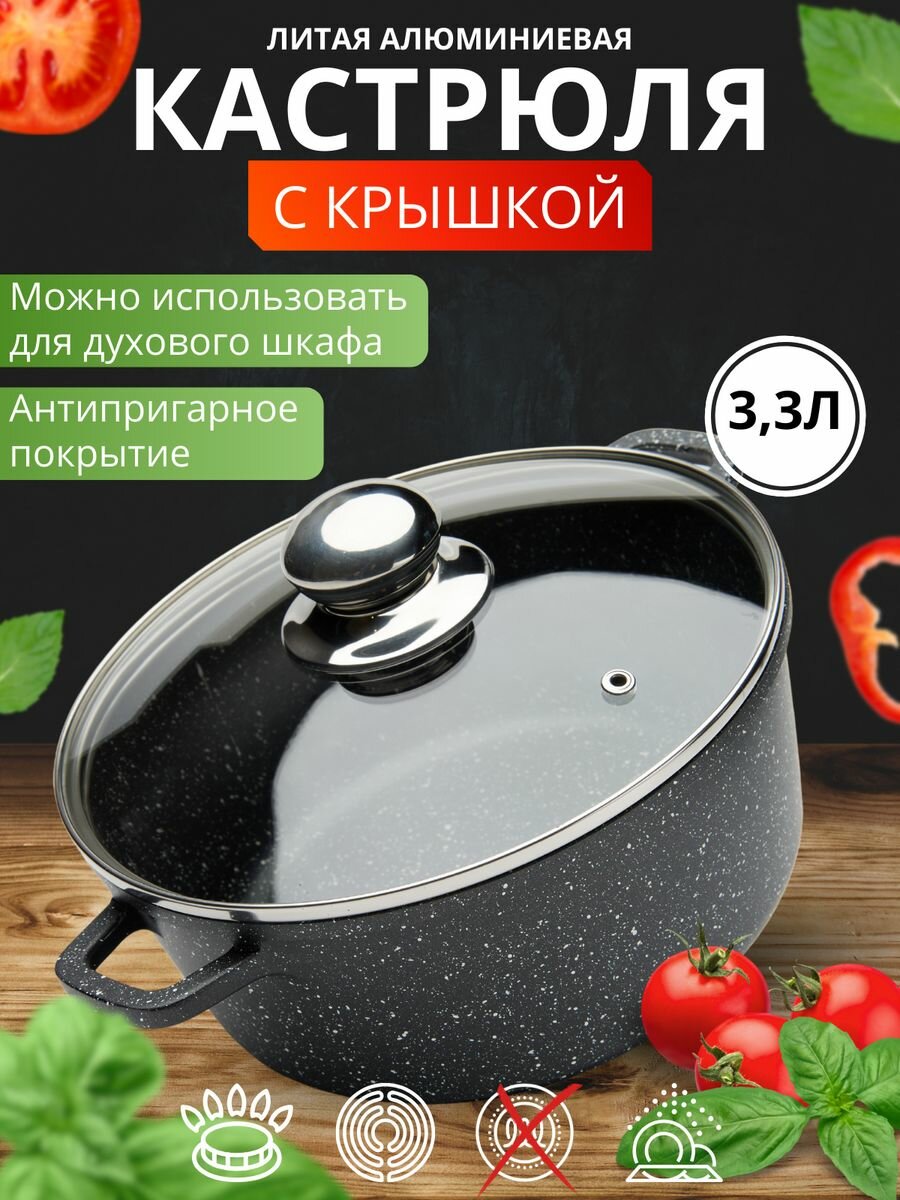 Кастрюля из литого алюминия со стеклянной крышкой, 3,3л информация: