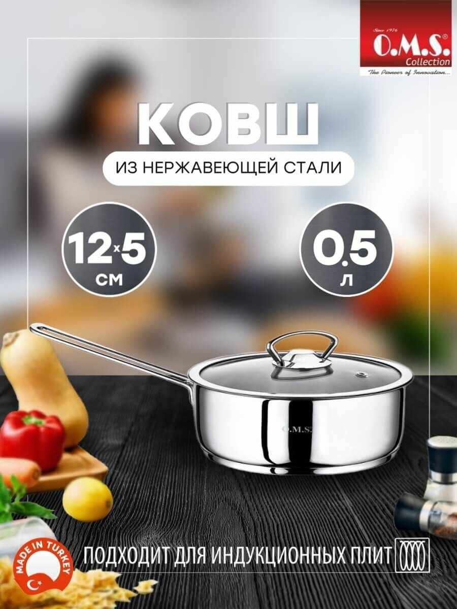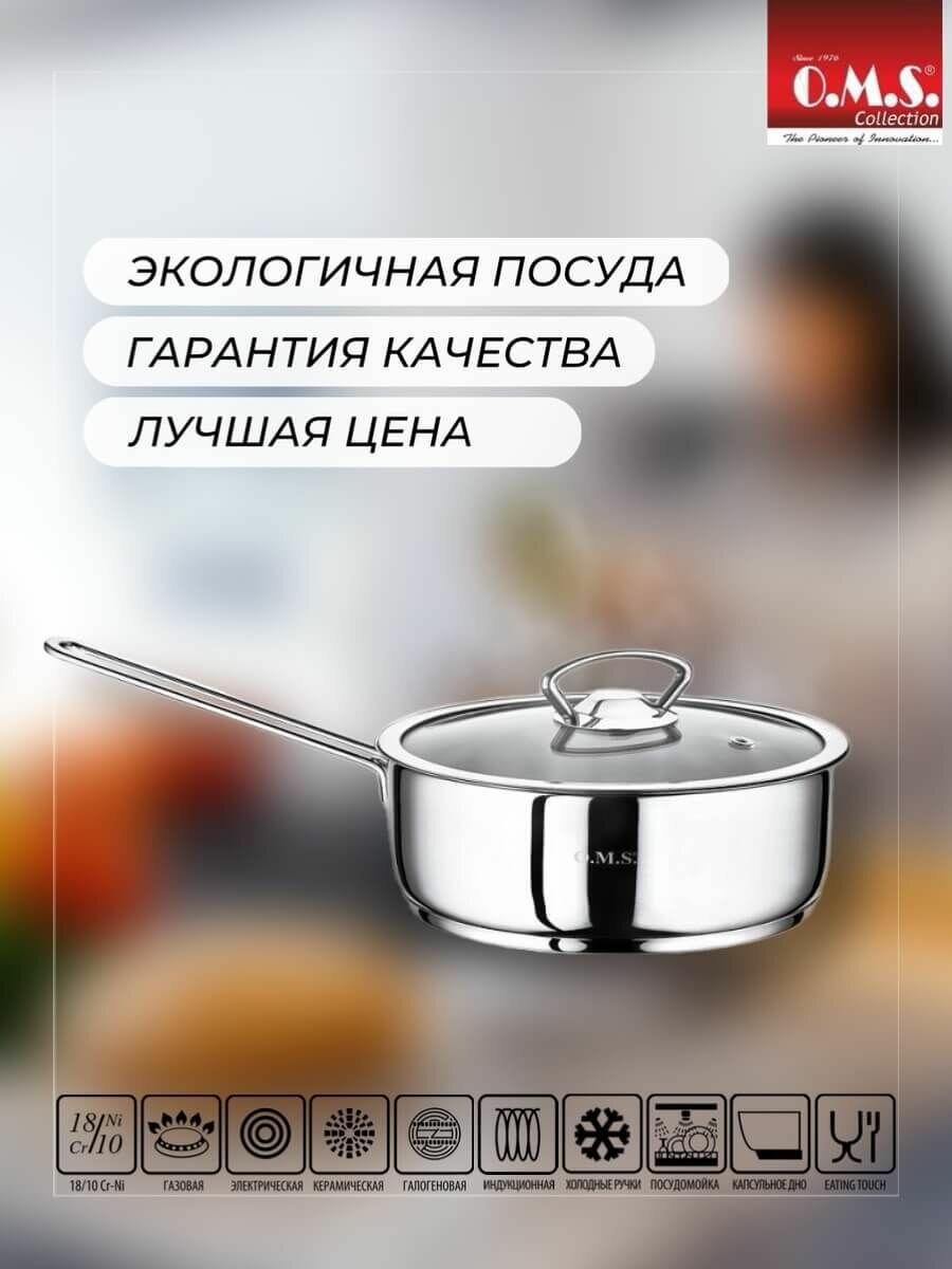 Кастрюля O.M.S Collection, нержавеющая сталь, для индукции, серебристая, 16см, 1,2кг