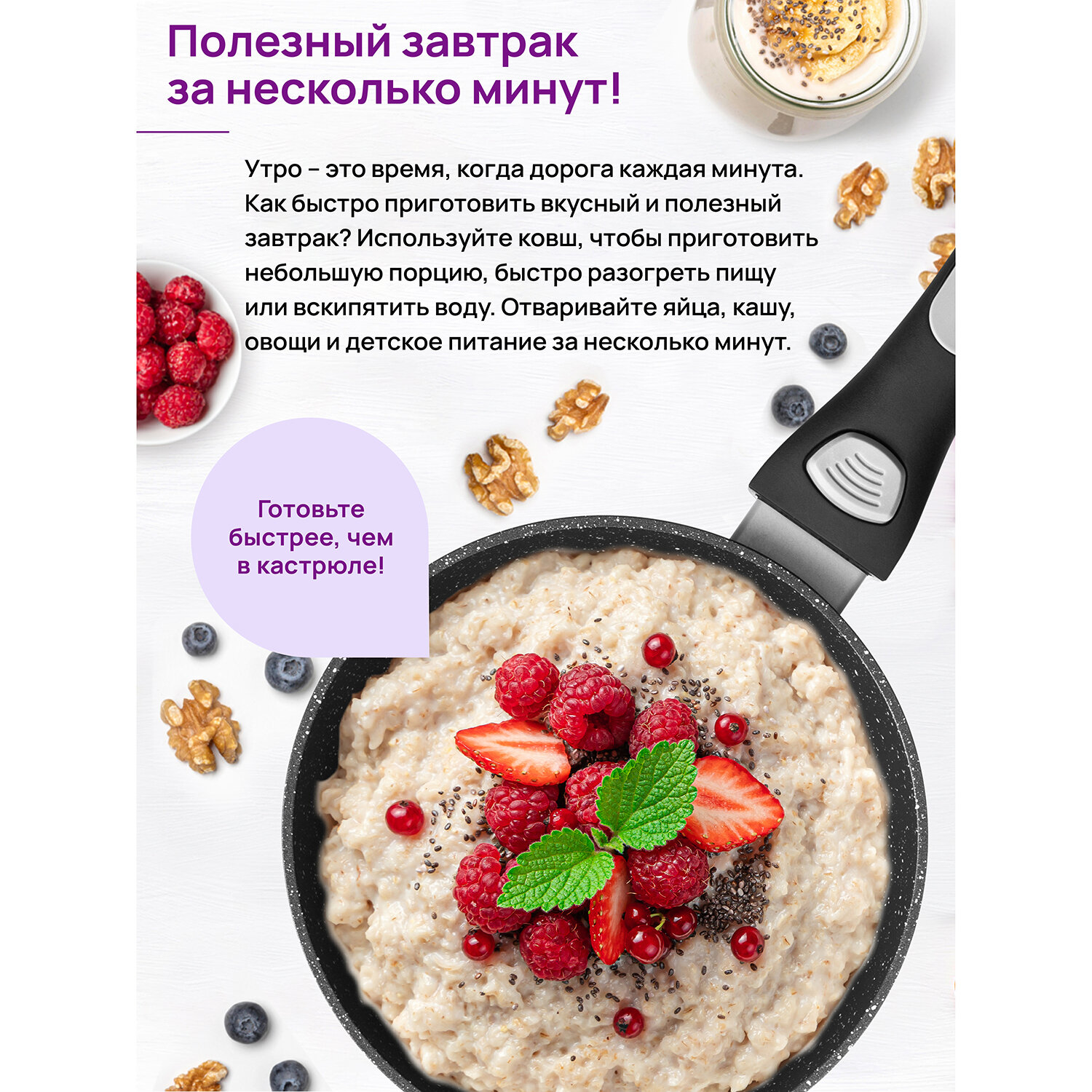Ковш 1,5 л Elan Gallery FIERRA Черный мрамор, индукция, с крышкой ф19, со съемной ручкой информация: