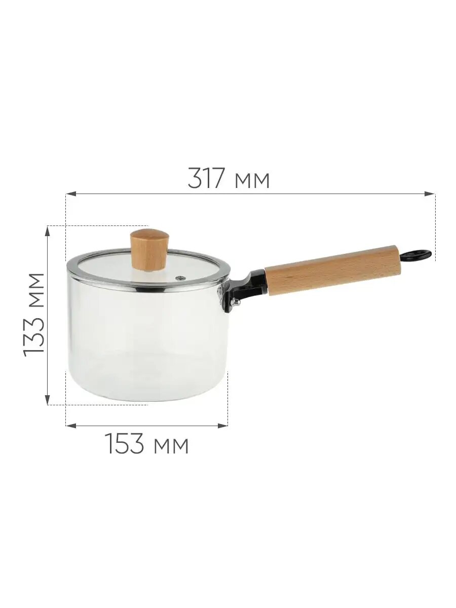 Ковш кухонный 1.5 л термостойкое стекло деревянная ручка информация: