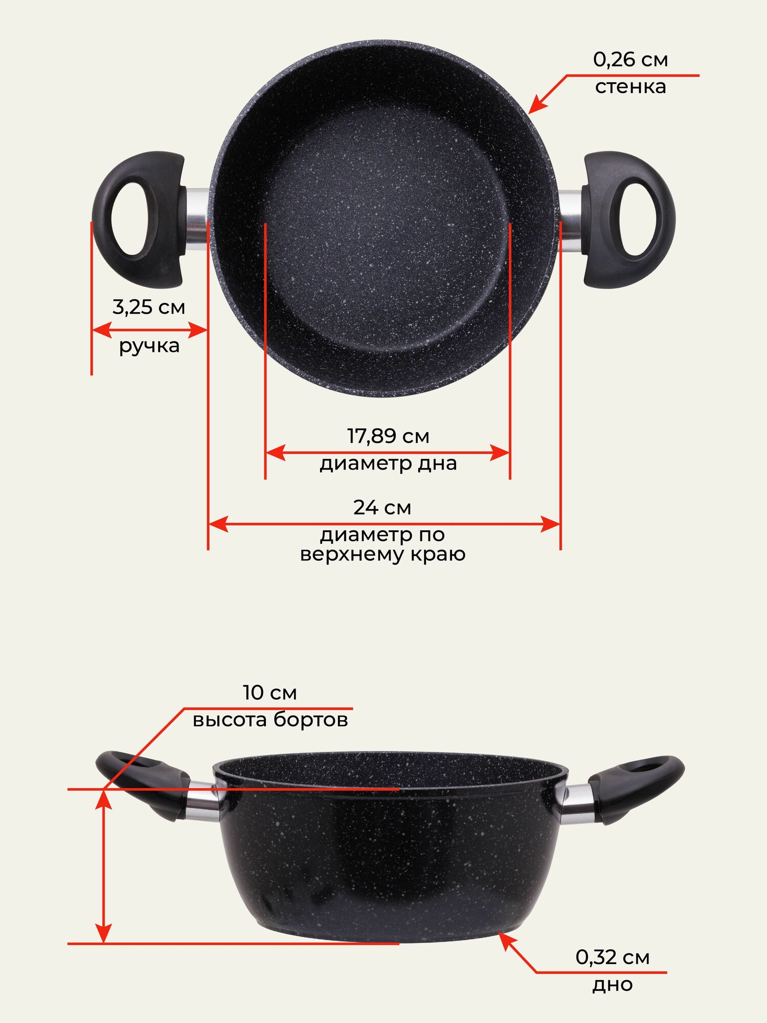 10 цен на Кастрюля 4 л. 24 см. с крышкой для индукционной плиты Vigoroso Nero (антипригарное покрытие)
