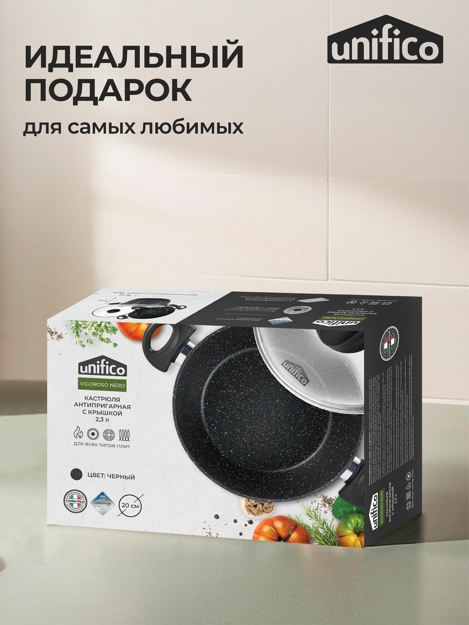 10 цен на Кастрюля 2.4 л. 20 см. с крышкой для индукционной плиты Vigoroso Nero (антипригарное покрытие)