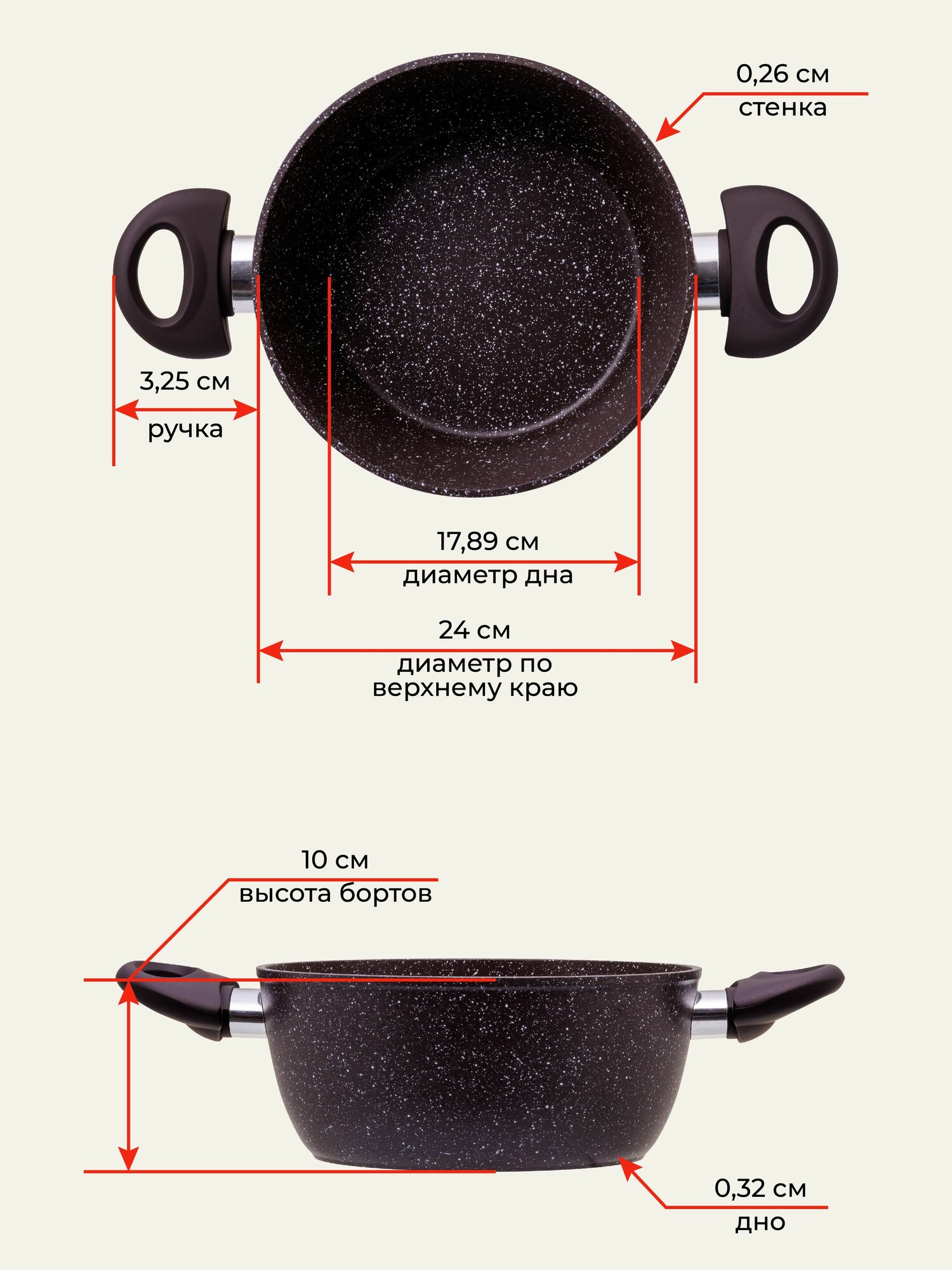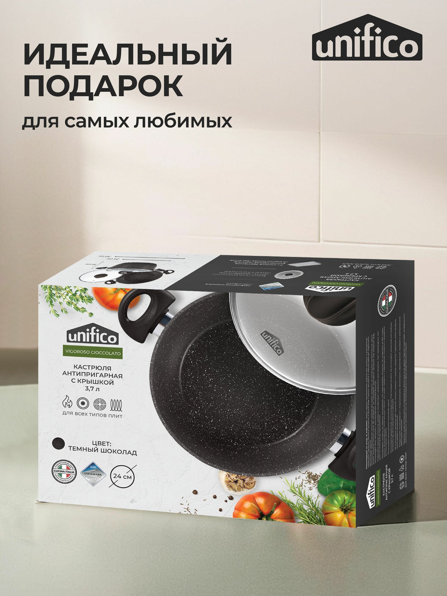 10 цен на Кастрюля 4 л. 24 см. с крышкой для индукционной плиты Vigoroso Cioccolato (антипригарное покрытие)