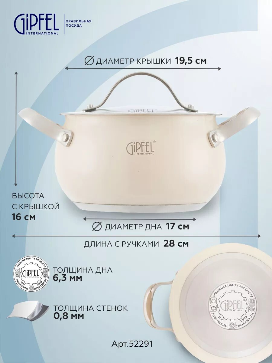 Отзывы на Кастрюля из нержавеющей стали Gipfel Novella 52291 20 см/4 л бежевый