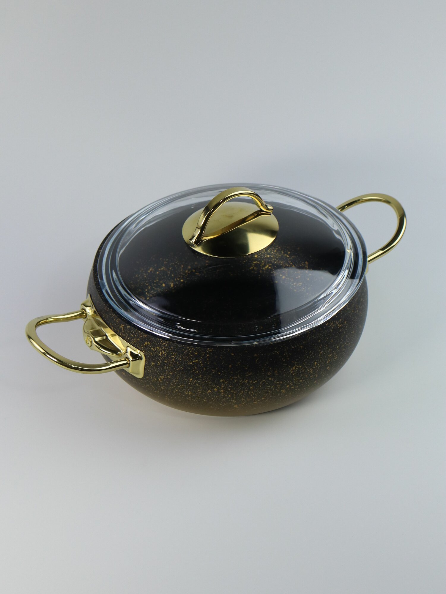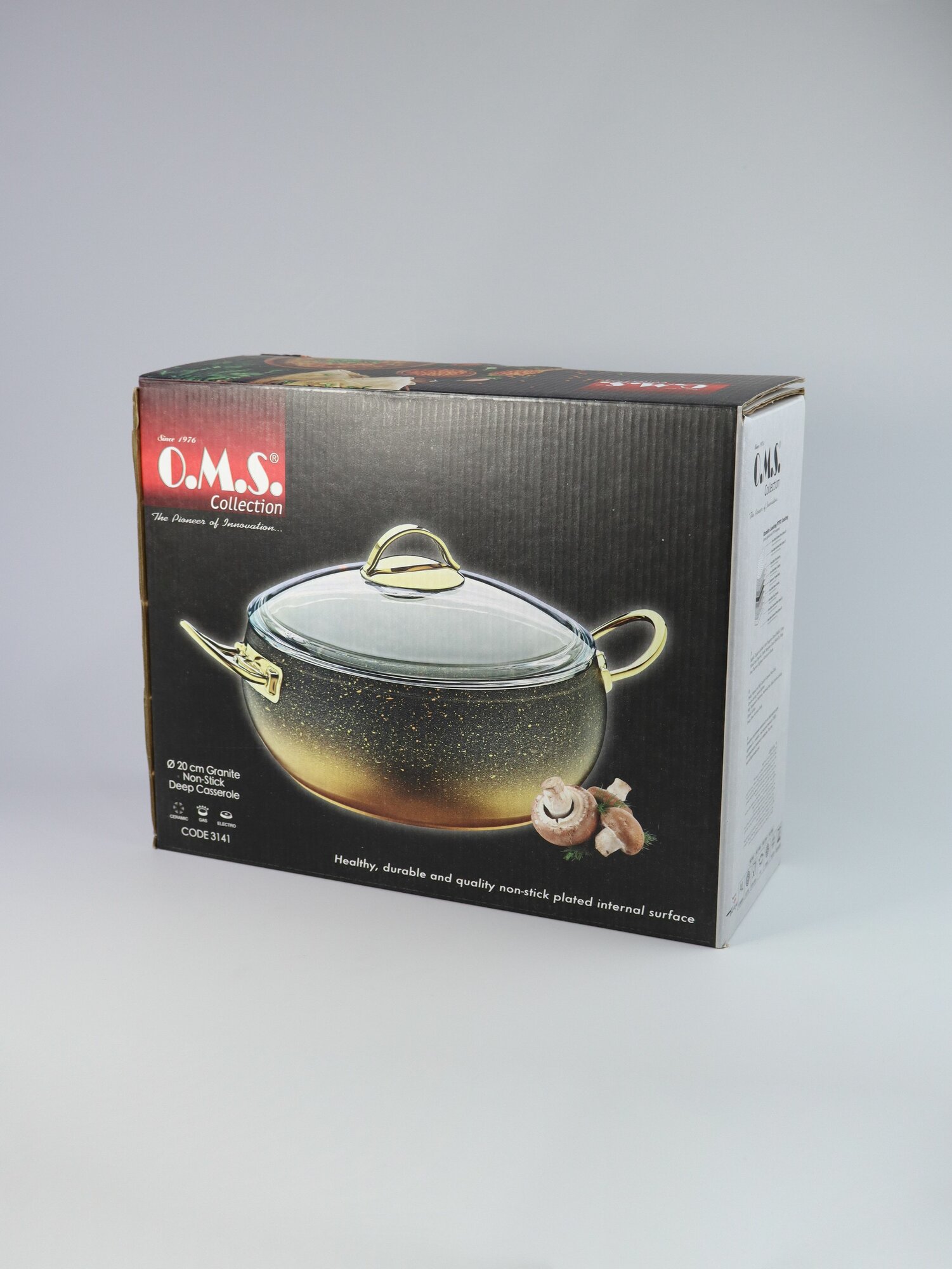 Кастрюля с крышкой 2,5л 20 см. Антипригарное гранитное покрытие. Цвет: черно-золотой. O.M.S. Collection. информация: