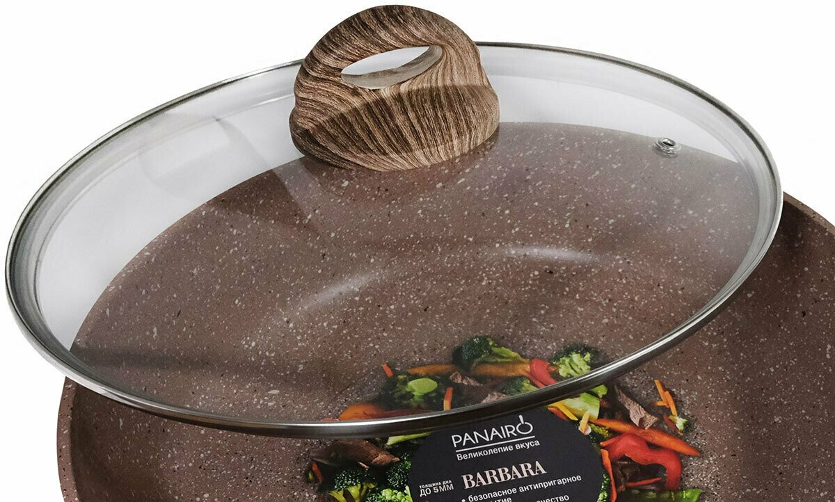 Крышка стеклянная Panairo с ручкой Soft-touch WOOD 22см информация: