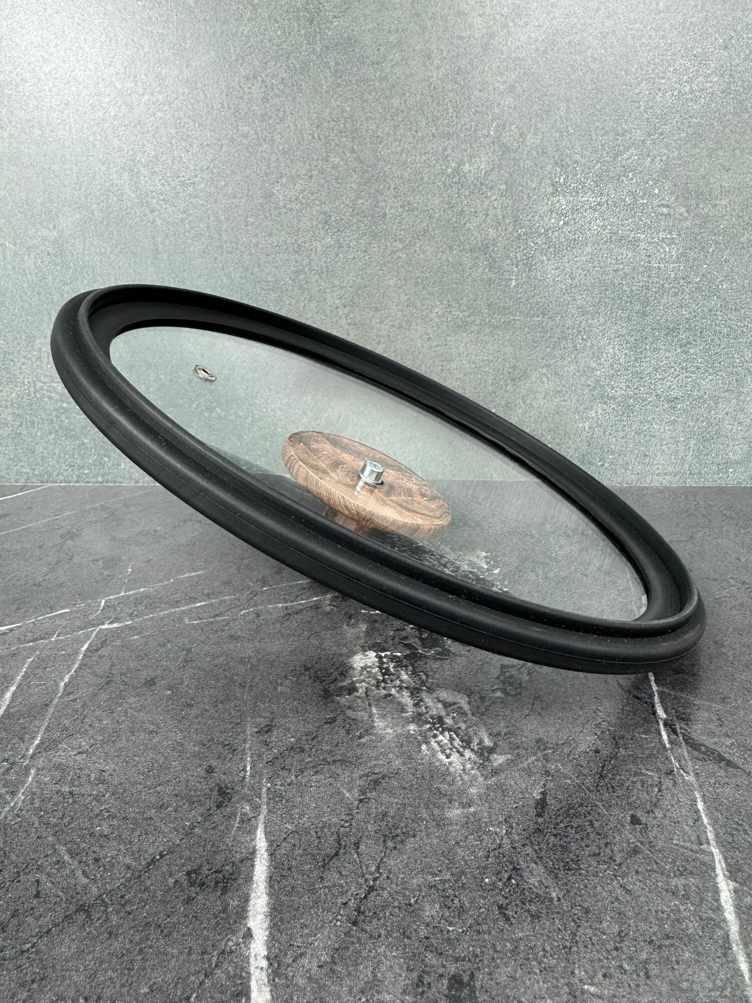 Стеклянная крышка 24 см с силиконовыми ободом и ручкой Panairo информация: