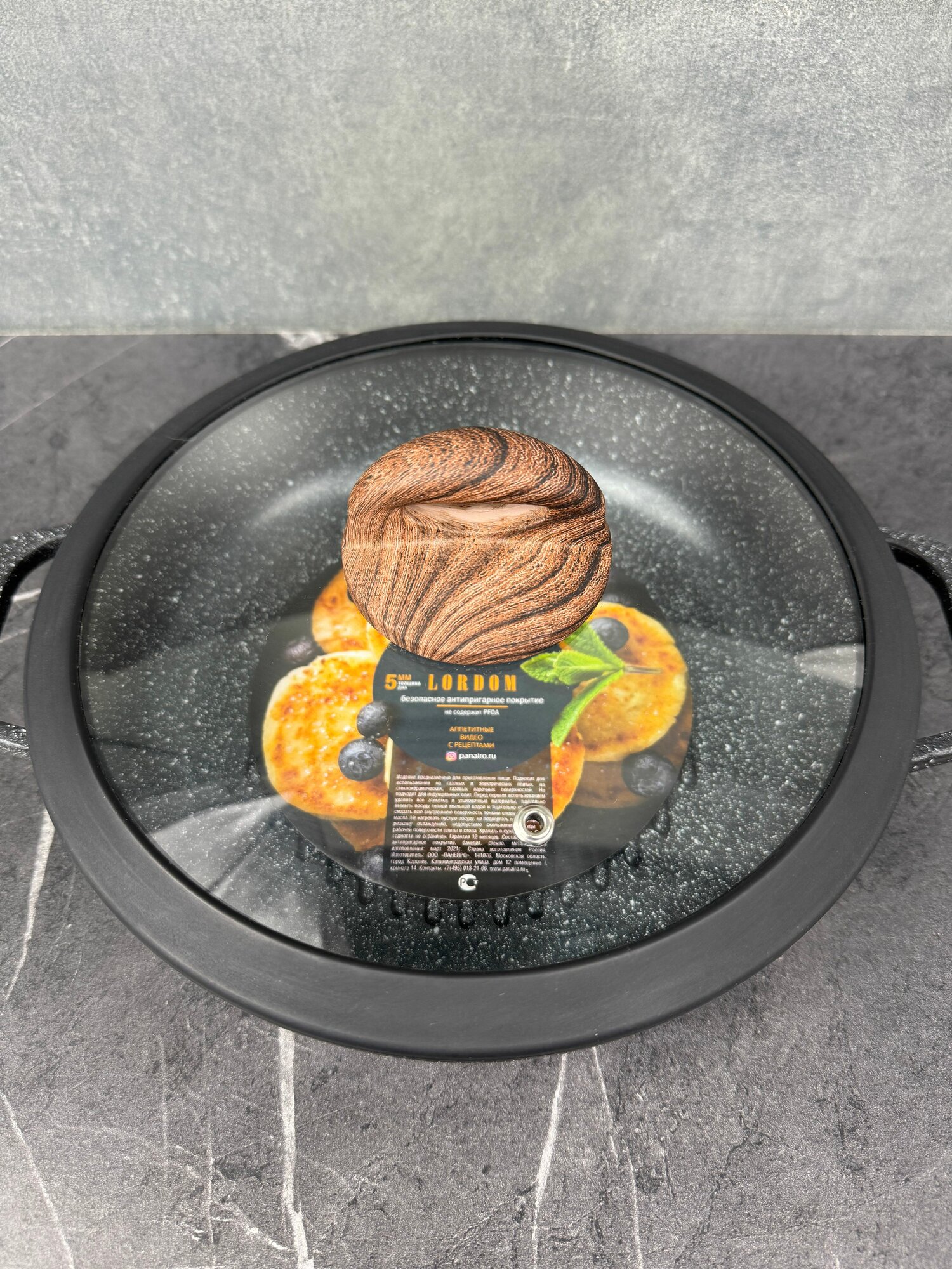 Стеклянная крышка Pomi d'Oro RUS-540005, крышка для сковороды, крышка 28 см, кухонная крышка, крышка для посуды