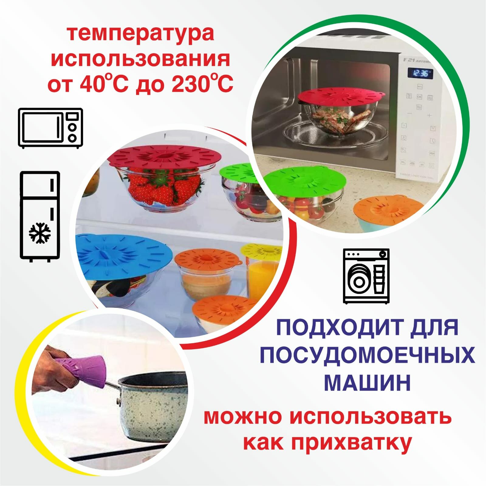 Отзывы на Набор универсальных /герметичных/ вакуумных/ силиконовых крышек для кастрюль, сковородок, мультиварок и посуды.