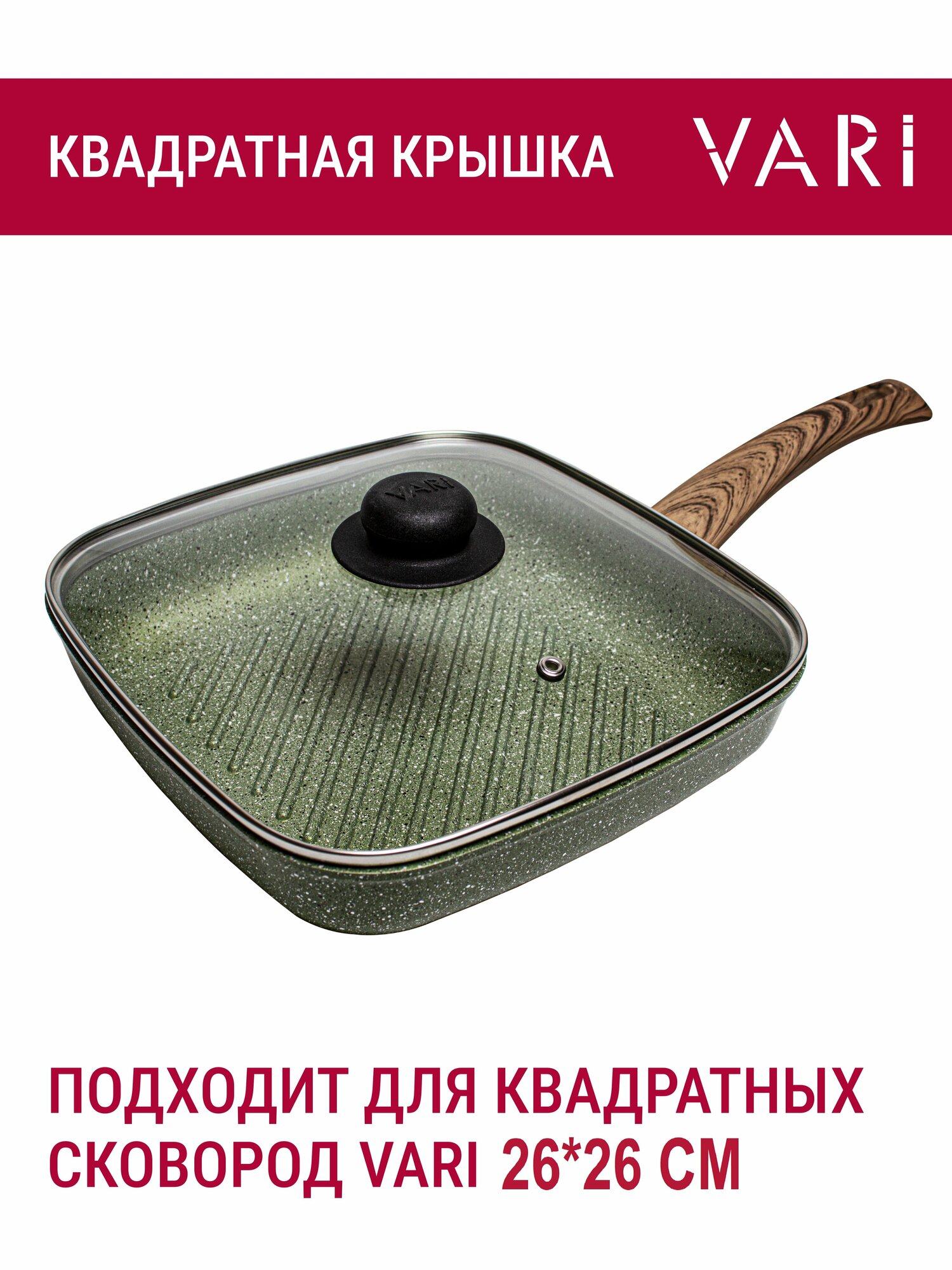 10 цен на Крышка для сковороды VARI квадратная 26х26 с металлическим ободом и пароотводом