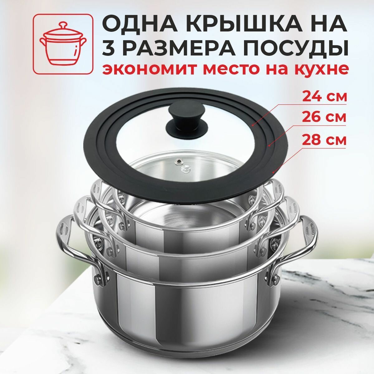 Крышка разноразмерная для сковород и кастрюль 24/26/28 см Unifico информация: