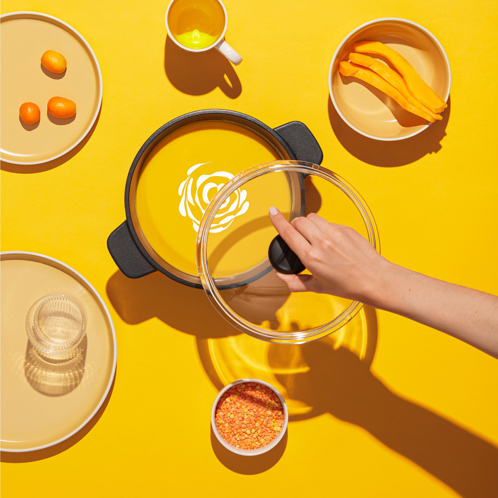 Стеклянная крышка Pomi d'Oro RUS-540005, крышка для сковороды, крышка 28 см, кухонная крышка, крышка для посуды