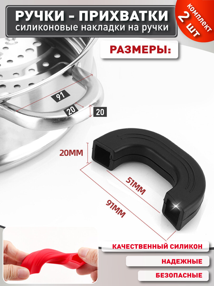 OlLena / Боковые силиконовые ручки для кастрюли, жаропрочные ручки-накладки для казана, черные, 91мм информация: