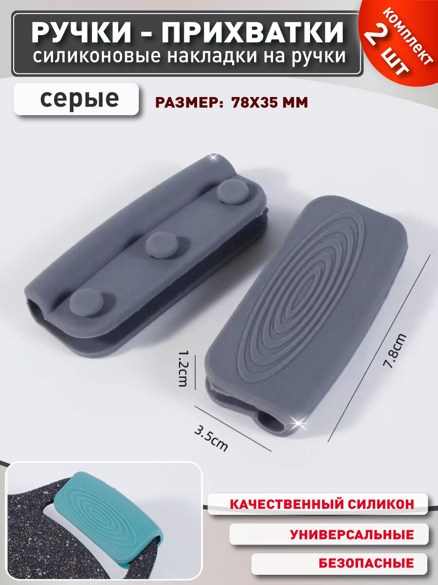 OlLena / Боковые силиконовые ручки для кастрюли, универсальные, жаропрочные ручки-накладки для казана, серые информация: