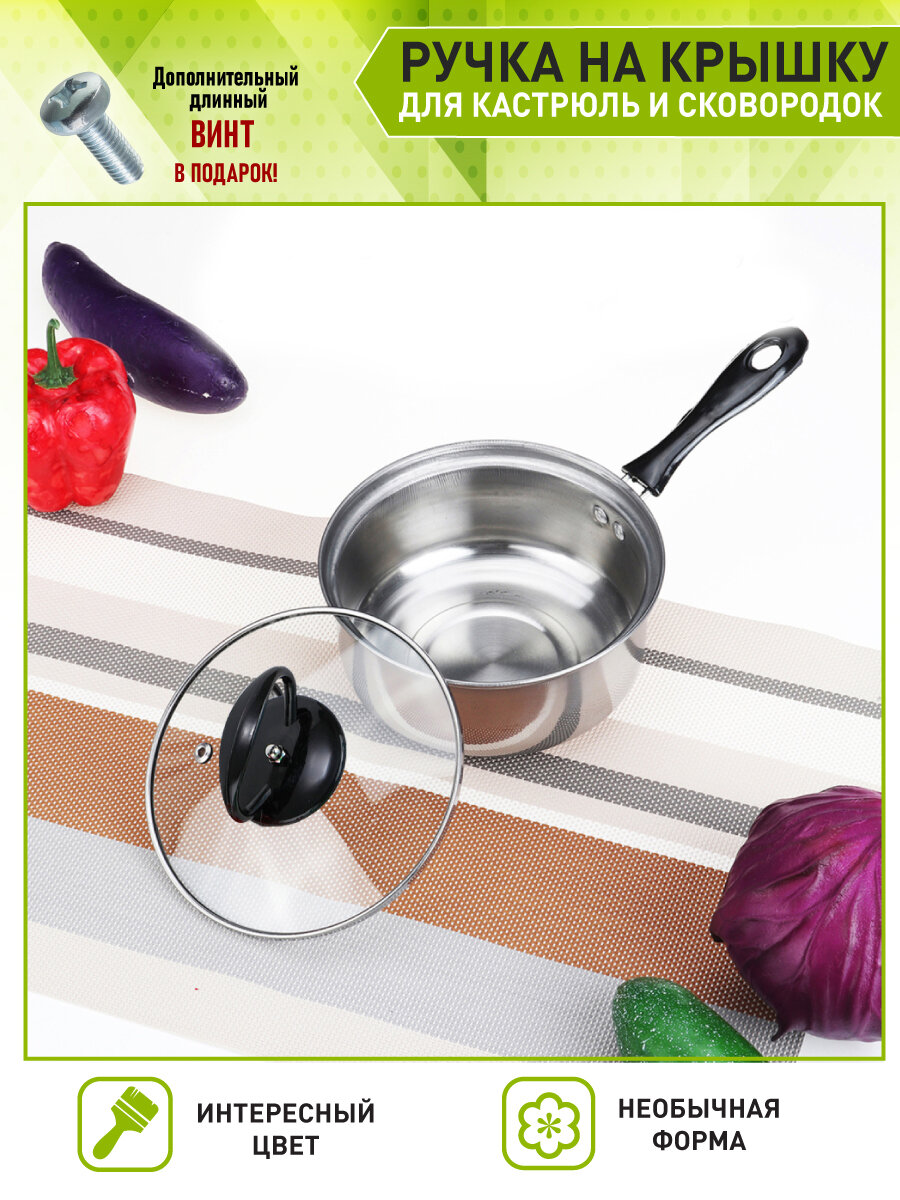 OlLena / Сменная ручка из термо-пластика для крышек сковородок и кастрюль, черная информация: