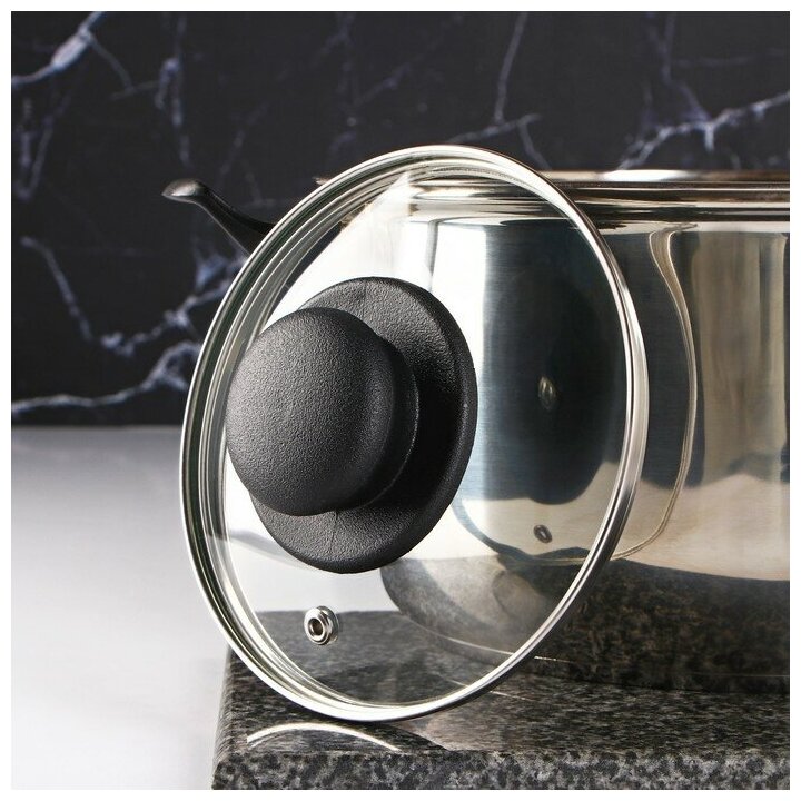 Крышка стеклянная для сковороды и кастрюли «Доляна», d=14 см, нержавеющий обод, пластиковая ручка информация:
