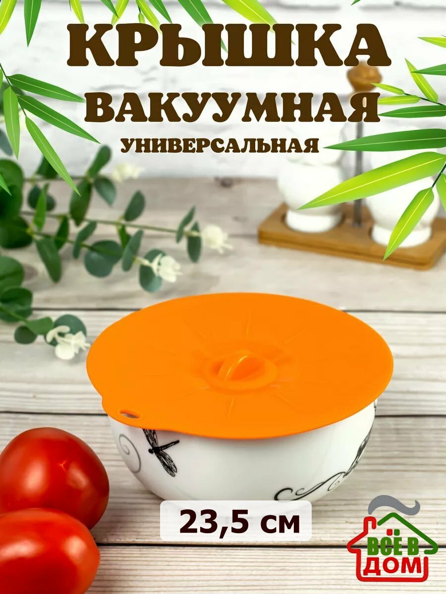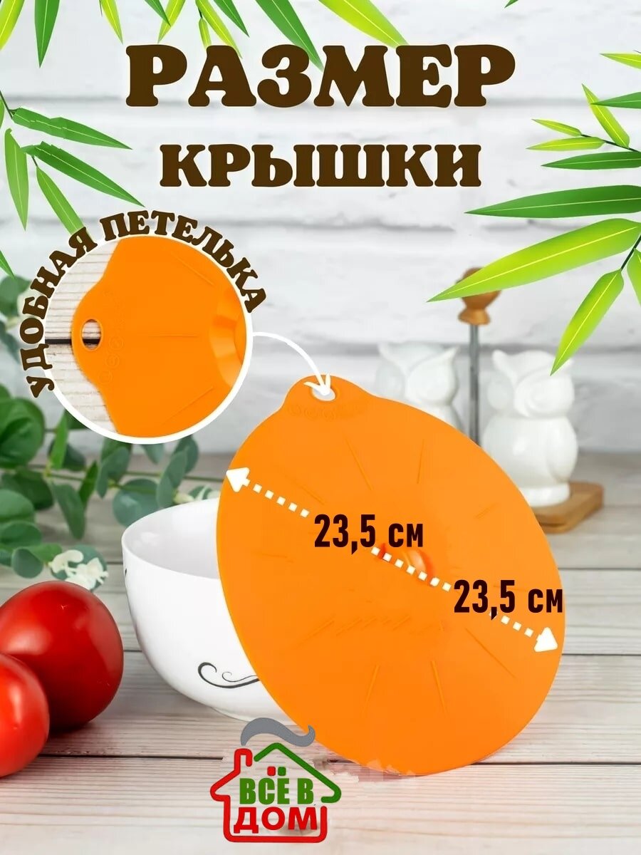 Отзывы на Силиконовая крышка присоска для посуды, термостойкая, вакуумная, диаметр 23,5 см, оранжевая
