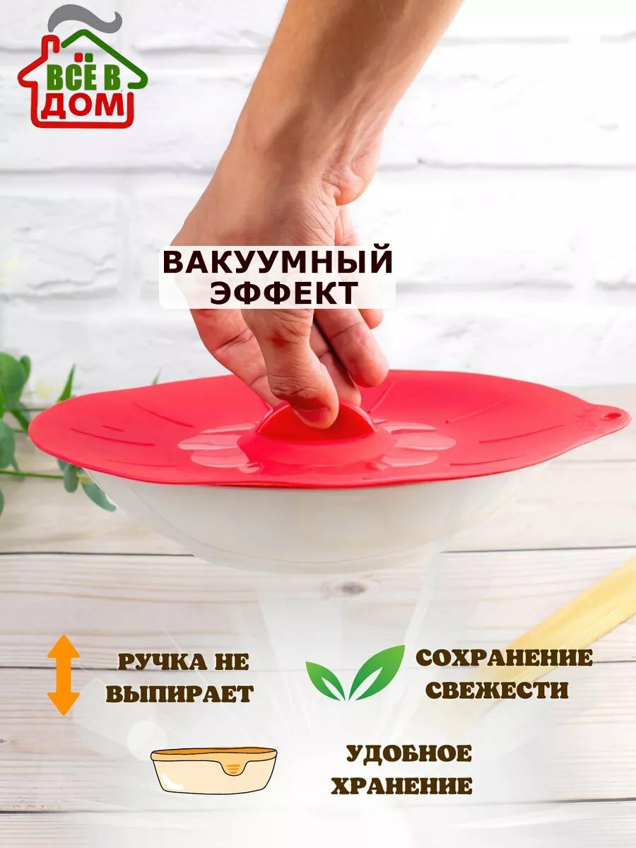Отзывы на Силиконовая крышка присоска для посуды, термостойкая, вакуумная, диаметр 23,5 см, красная