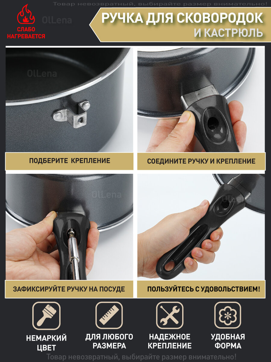 OlLena / Сменная ручка для сковородки и ковшика, бакелитовая, бежевая информация: