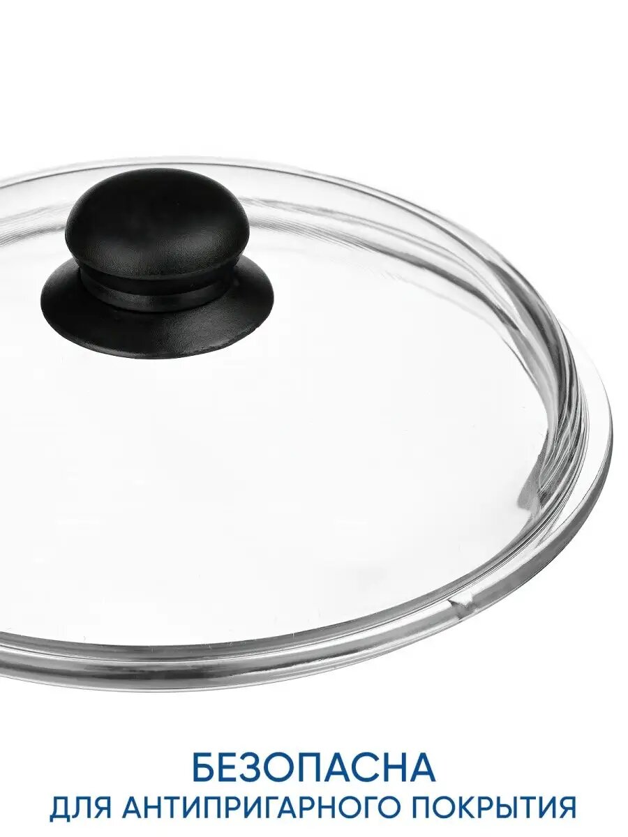 Крышка 22 см стеклянная высокая для сковороды кастрюли информация: