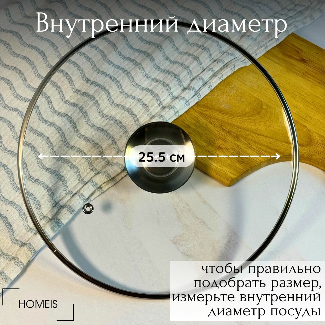 Крышка стеклянная для сковороды и кастрюли 24 см с металлической ручкой информация: