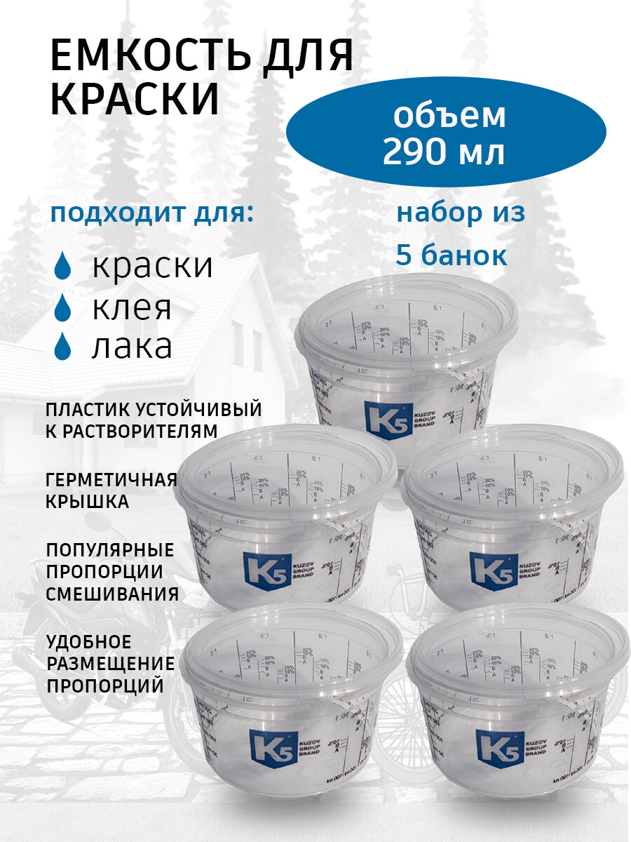 Емкость для смешивания краски 290мл мерная, набор 5 шт информация: