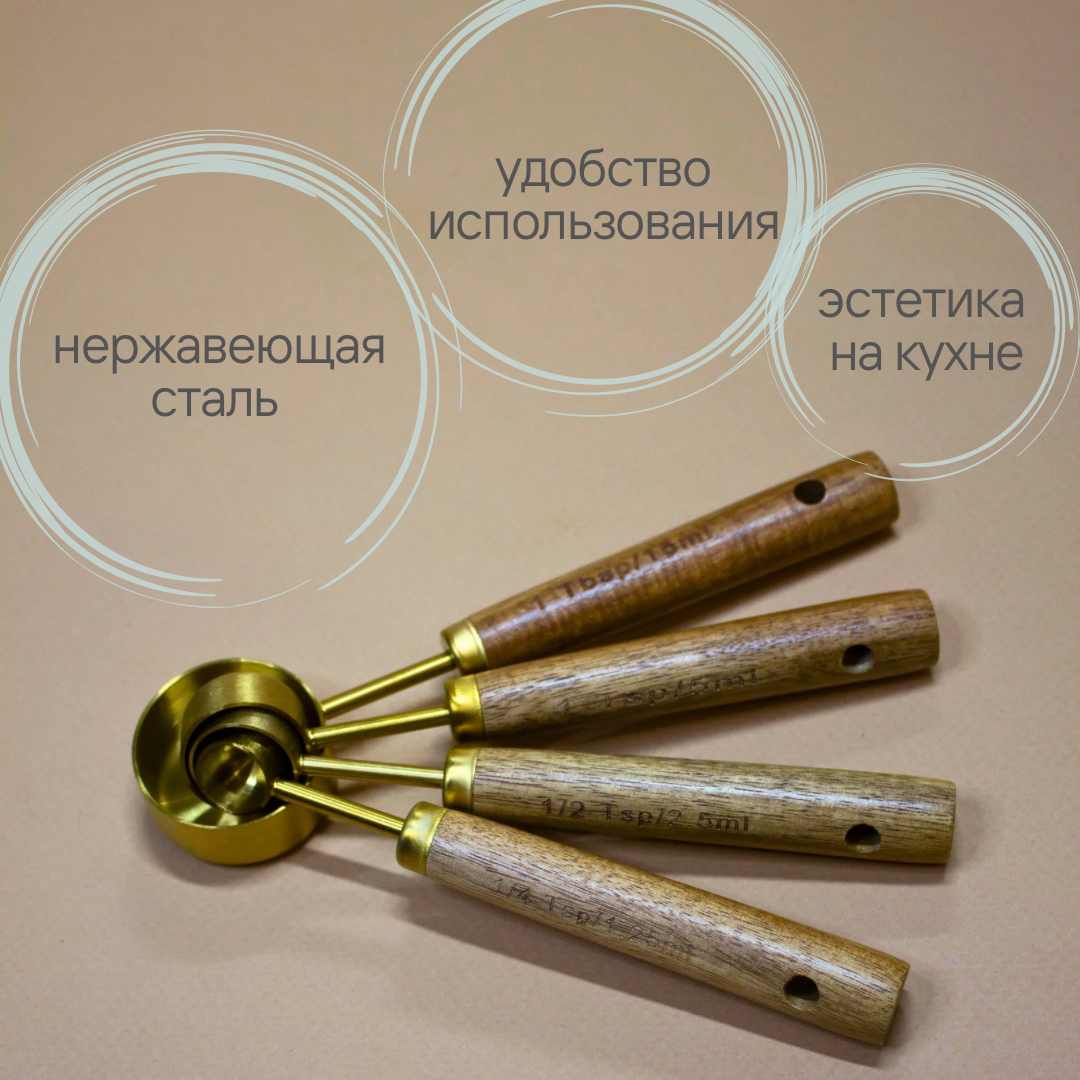 Набор маленьких мерных ложек с деревянной ручкой информация: