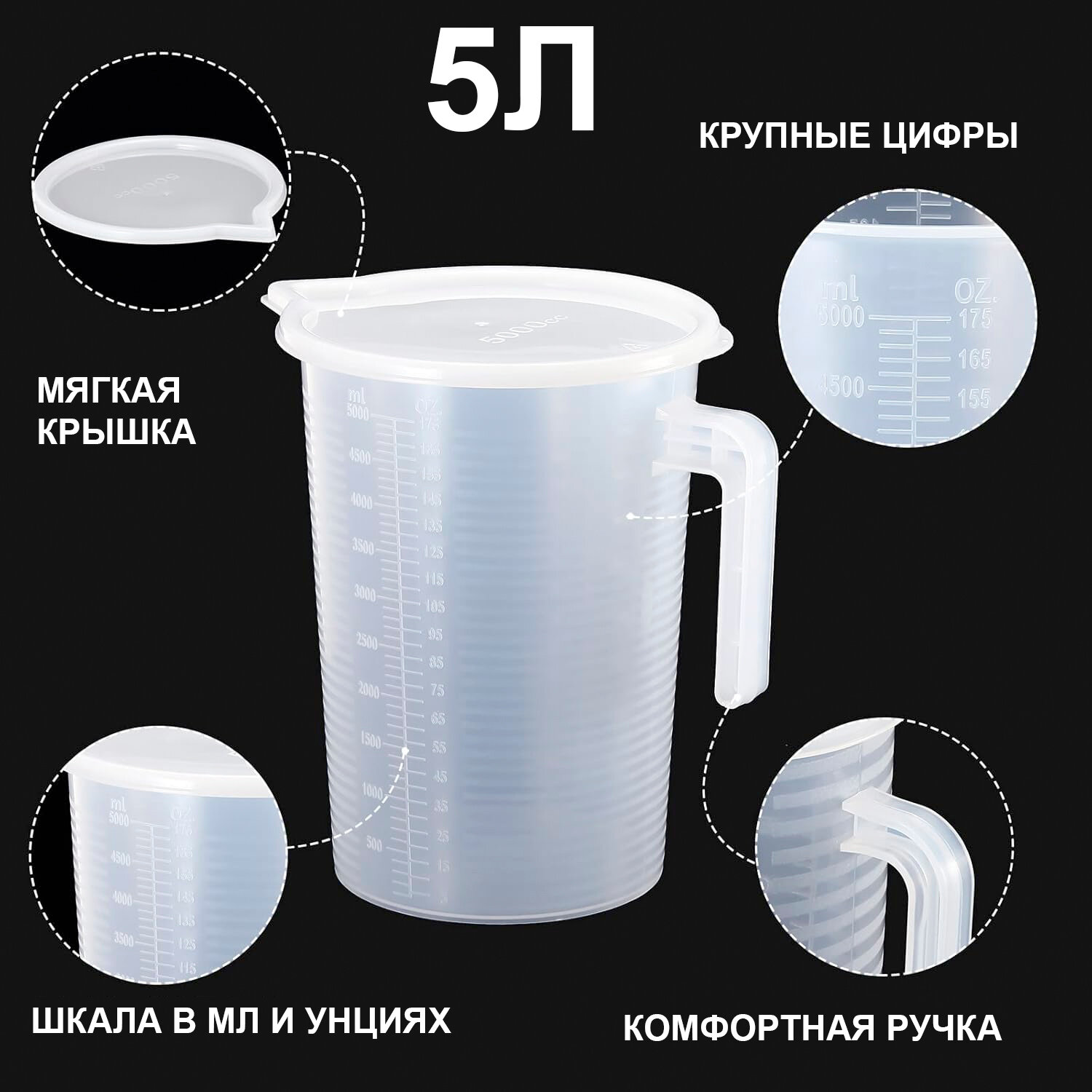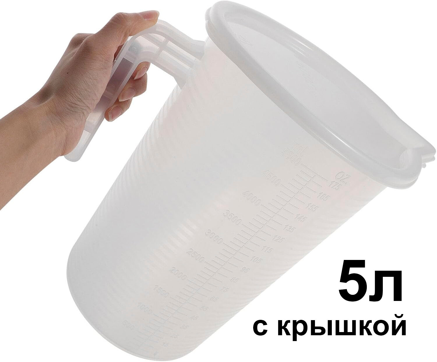 Стакан мерный с крышкой 5 литров (5000 мл.) / Мерная емкость из полипропилена HOGA-CPP5000 информация: