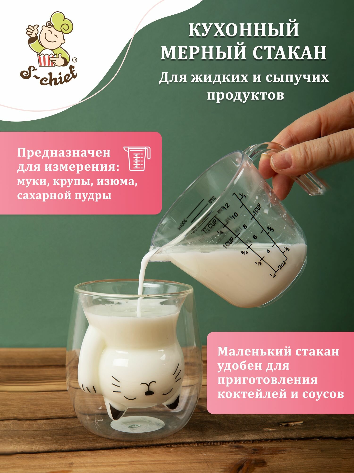 10 цен на Мерный стакан "S-CHIEF" SHF-0346 9x12 см 300 мл 1 шт