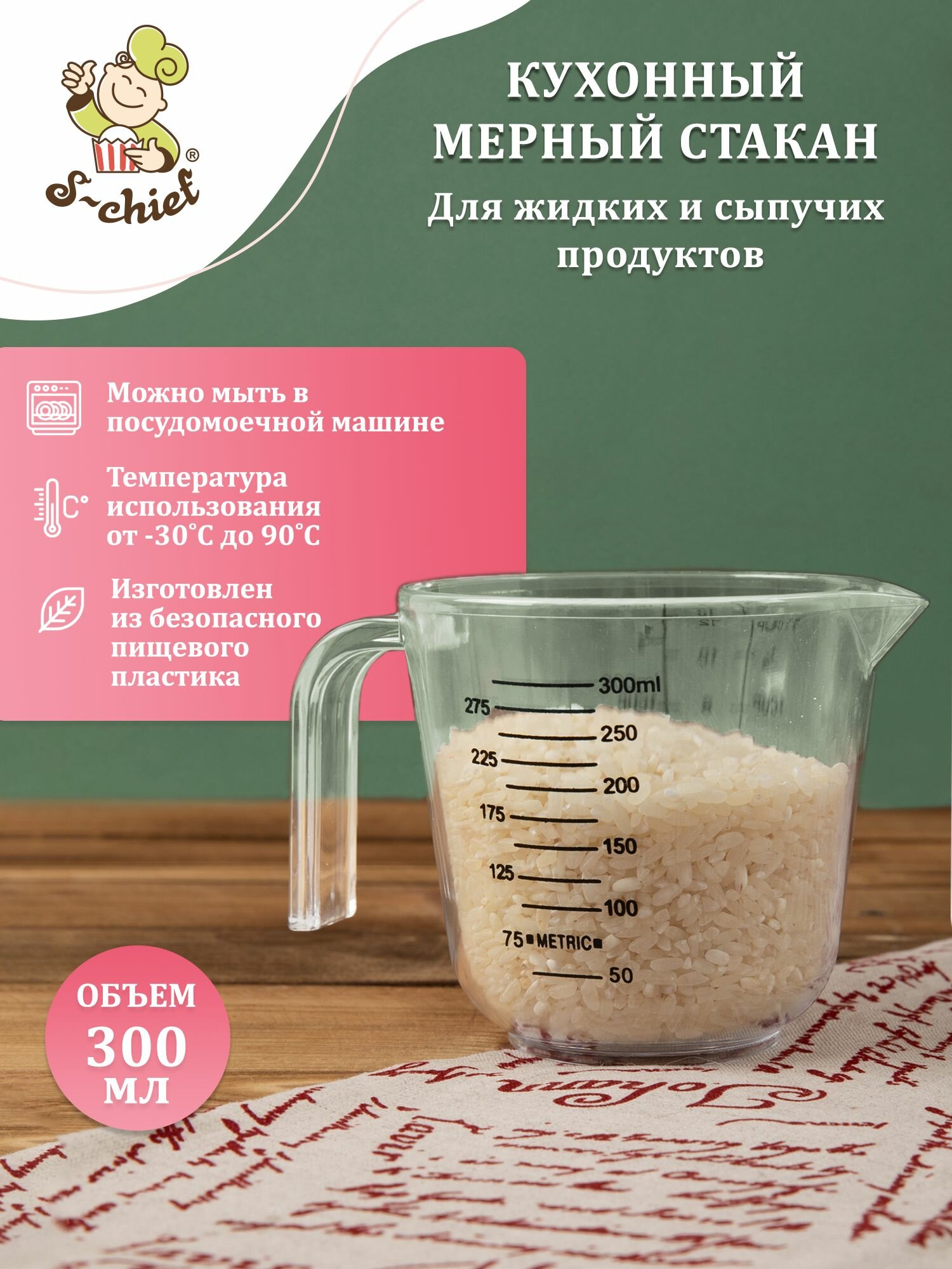 Мерный стакан "S-CHIEF" SHF-0346 9x12 см 300 мл 1 шт информация: