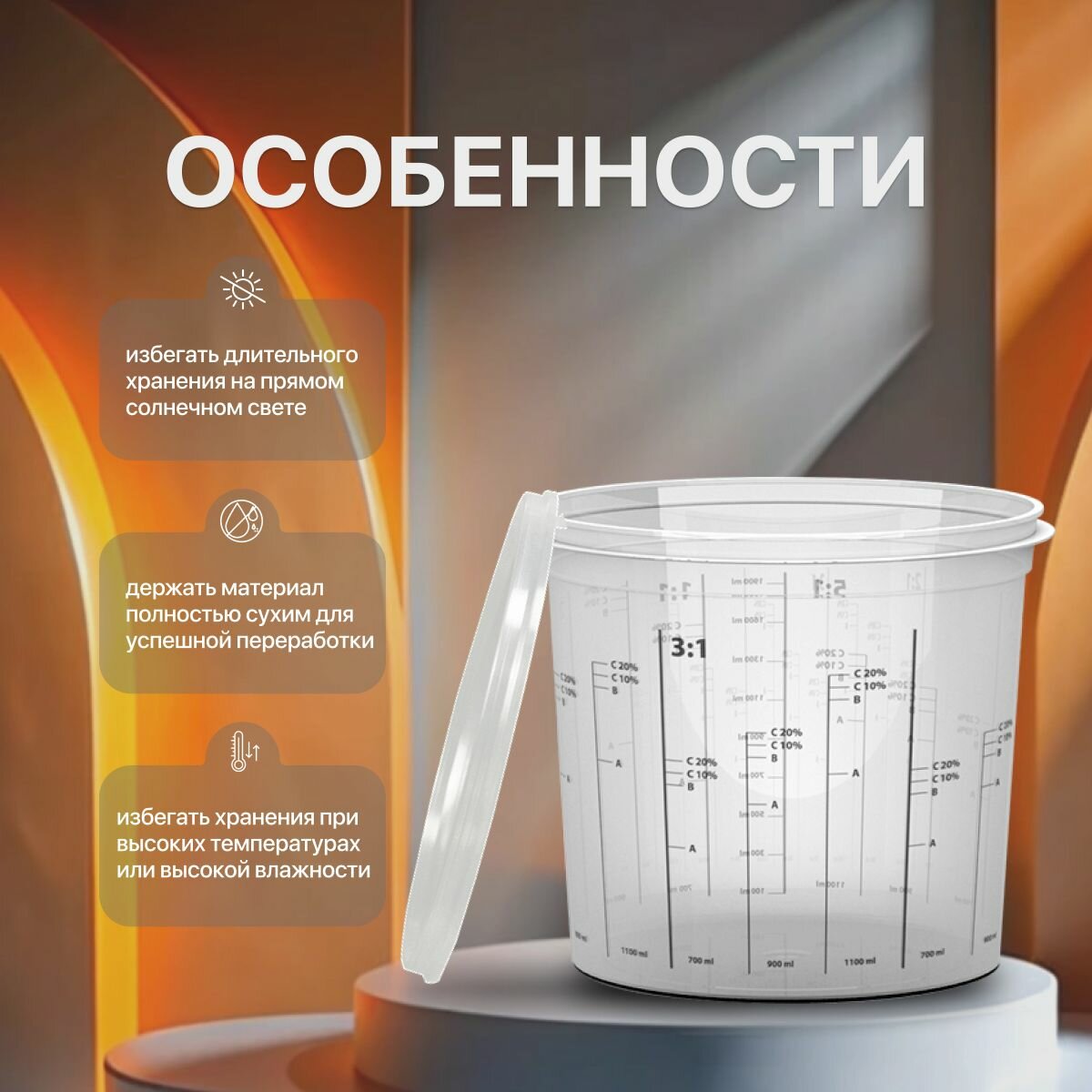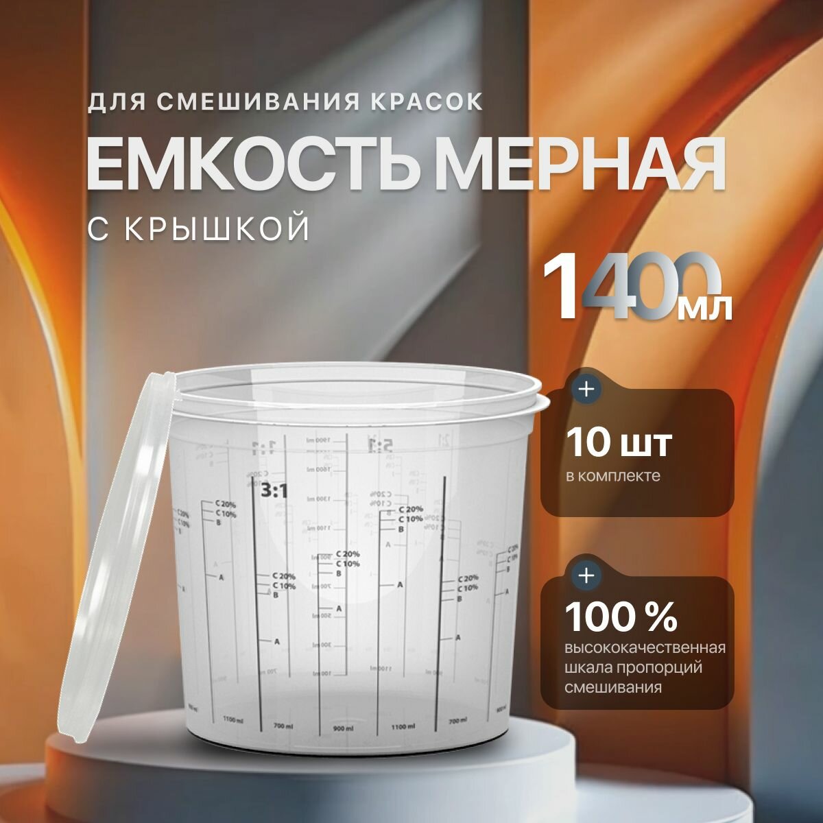 Отзывы на Емкость мерная пластиковая для смешивания красок STINGER с крышкой (набор 10 шт) 1400 мл