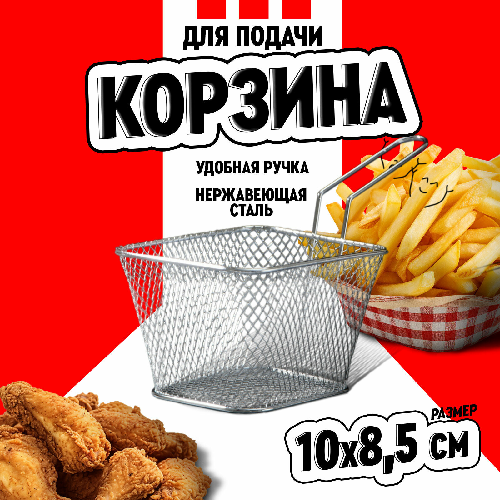 Корзинка для картофеля фри Доляна «Квадро», 10×8×6,5 см, мелкая сетка информация: