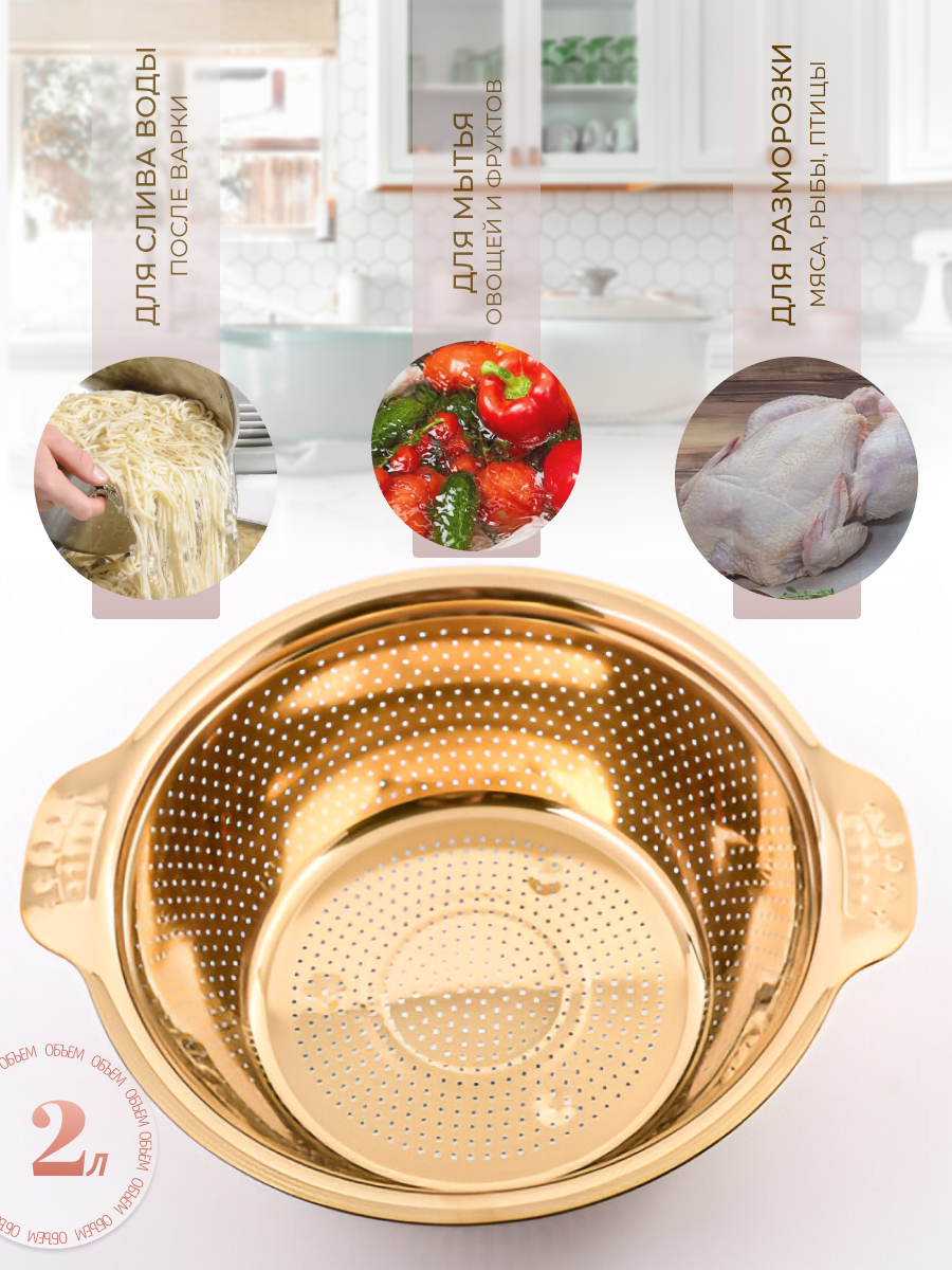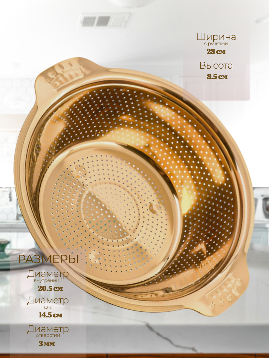 Дуршлаг с ручками 2 л. диаметром 23.5 см. золотистый нержавеющая сталь информация: