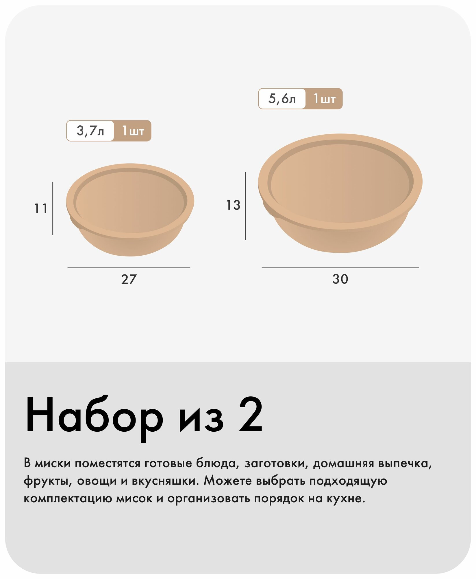 Набор мисок с крышками «Шарм №28», Альт-Пласт, пластик, 3,7л (2шт), пластик, какао 645 ₽