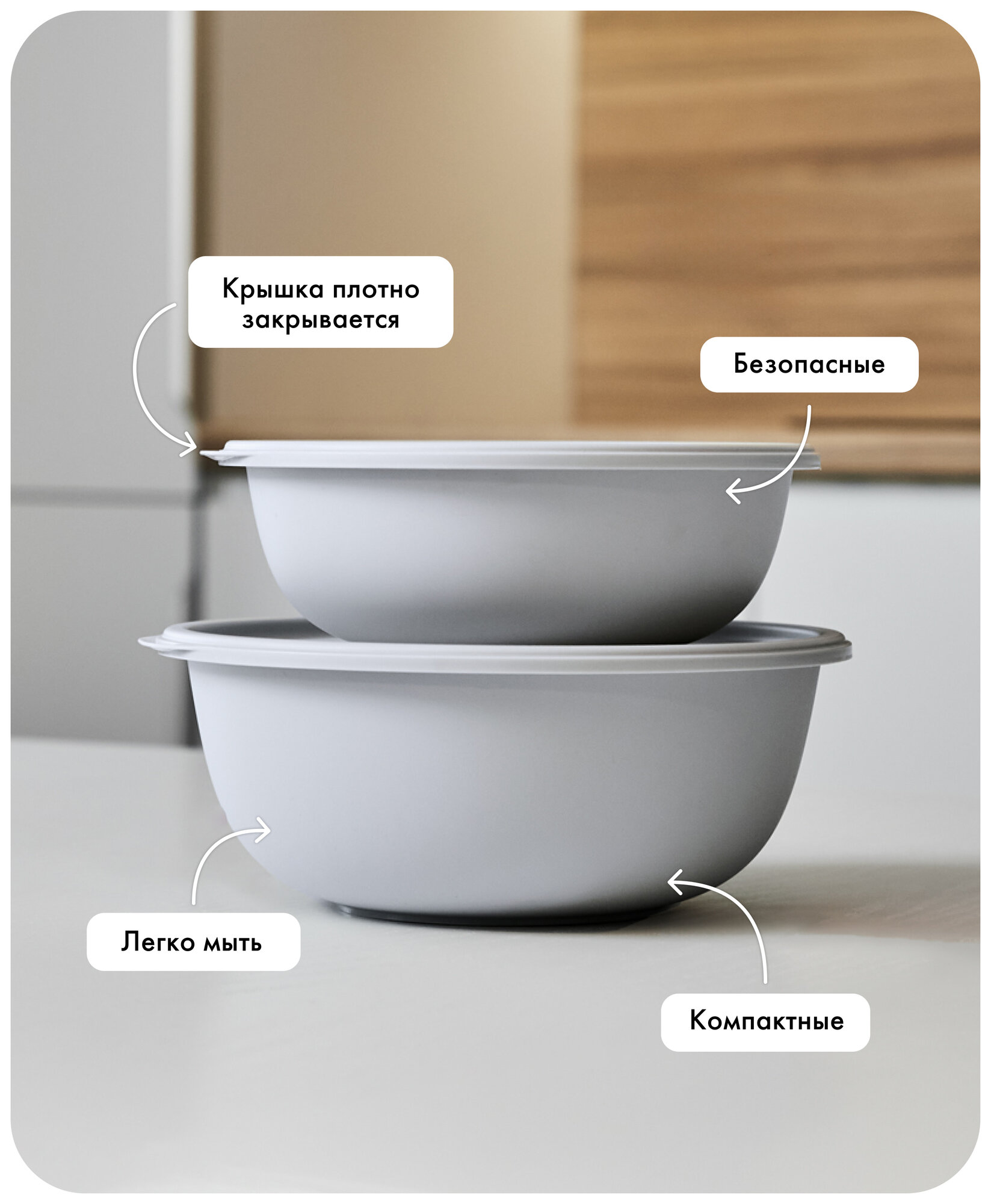 Набор мисок с крышками «Шарм №19», Альт-Пласт, 1,3л (2шт), пластик, серый 415 ₽