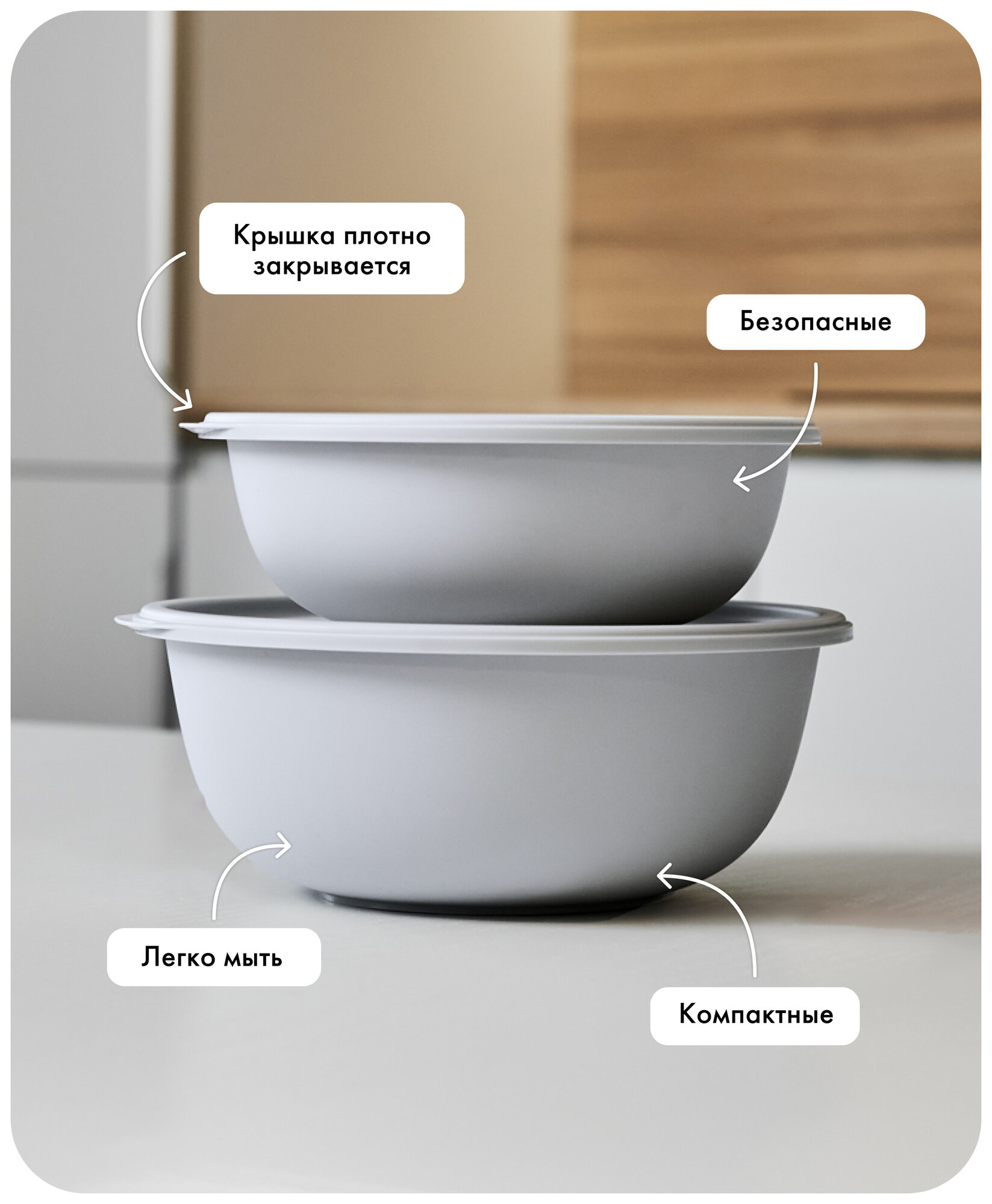 Набор мисок с крышками «Шарм №19», Альт-Пласт, 1,3л (2шт), пластик, серый 415 ₽