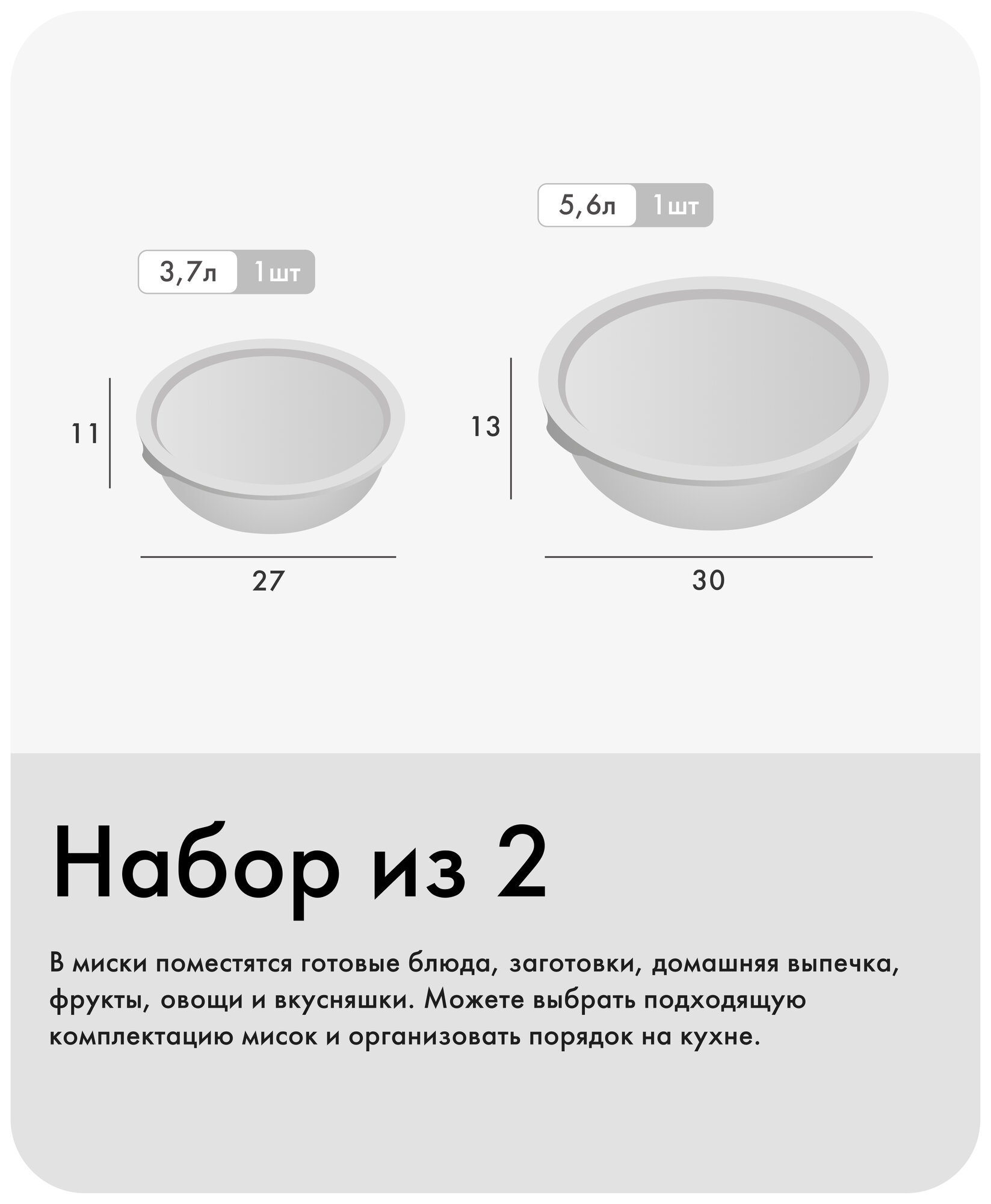Набор мисок с крышками «Шарм №21», Альт-Пласт, 5,6л (2шт), пластик, серый 729 ₽